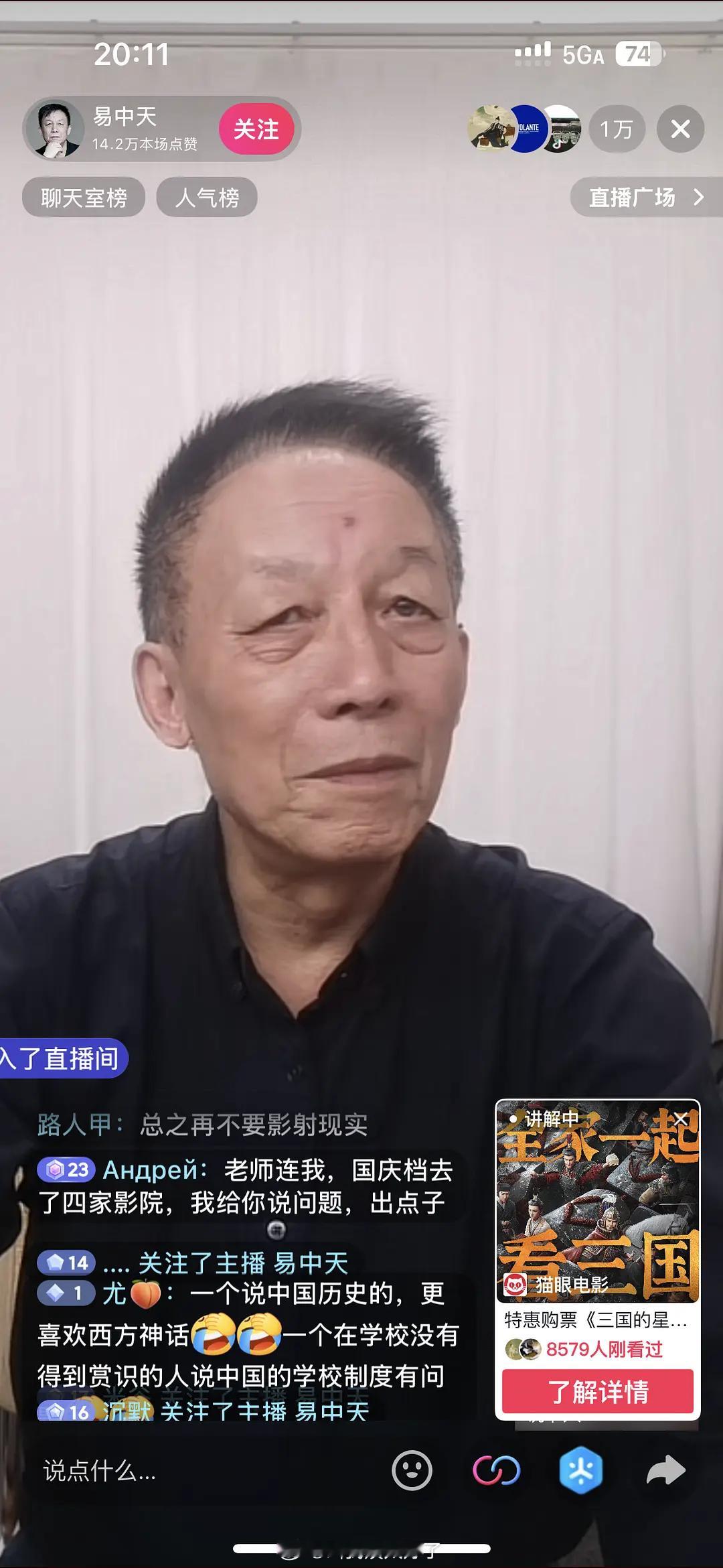 因为《三国的星空》这部电影的票房太差了,易中天说开直播想听听批评的声音,看电影哪的问题比较大。🤔大家觉得哪里有问题?
