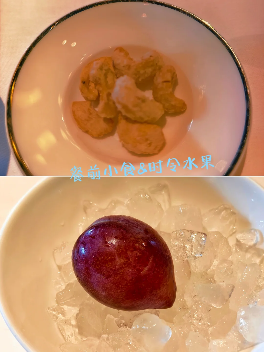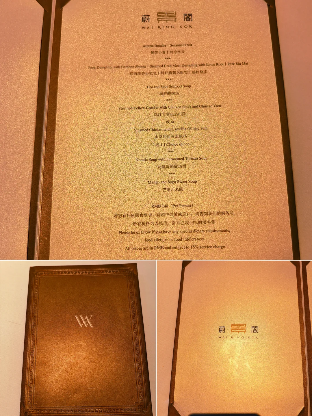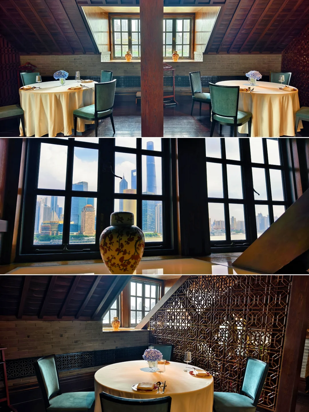 🔥蔚景阁中餐厅,位于上海外滩华尔道夫酒店(原上海总会大楼)5楼,是一家主打粤菜、客家菜并融合本帮特色的高端中餐厅。 🔥餐厅身处欧式风格的外滩建筑阁楼,室内却满满中国古雅意趣,中式艺术风格的设计与建筑传统结构相互辉映。透过老虎窗,还能远眺黄浦江和陆家嘴的摩天高楼,历史与现代在此巧妙融合。 🔥今年的秋季迟迟不来,整个秋季餐厅周都处于盛夏高温中,2025年秋季餐厅周更适合叫夏季餐厅周吧? 🔥餐前小食是腰果,时令水果只是一颗西梅,有点敷衍?[笑哭R]然后上了三款点心:鲜肉甜笋小笼包、鲜虾脆藕凤眼饺、瑶柱烧卖。 🔥汤是海鲜酸辣汤,主菜是鸡汁大黄鱼蒸山药、山茶有盐蒸走地鸡。主食是发酵番茄酸汤面,甜品是芒果西米露,其实也就是杨枝甘露。 🔥总体来说味道还是可以的,就是量有点少,而且主菜是二选一,并不是按位上的。