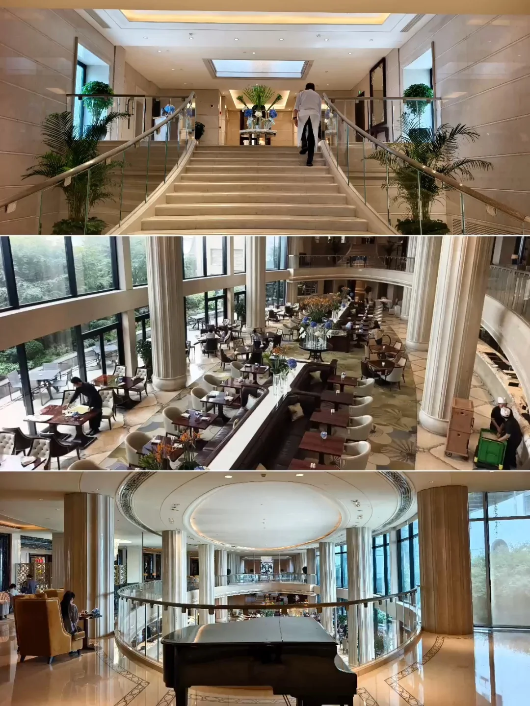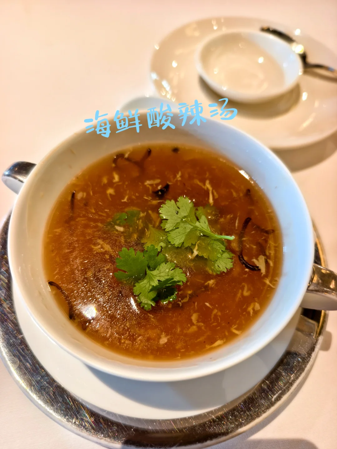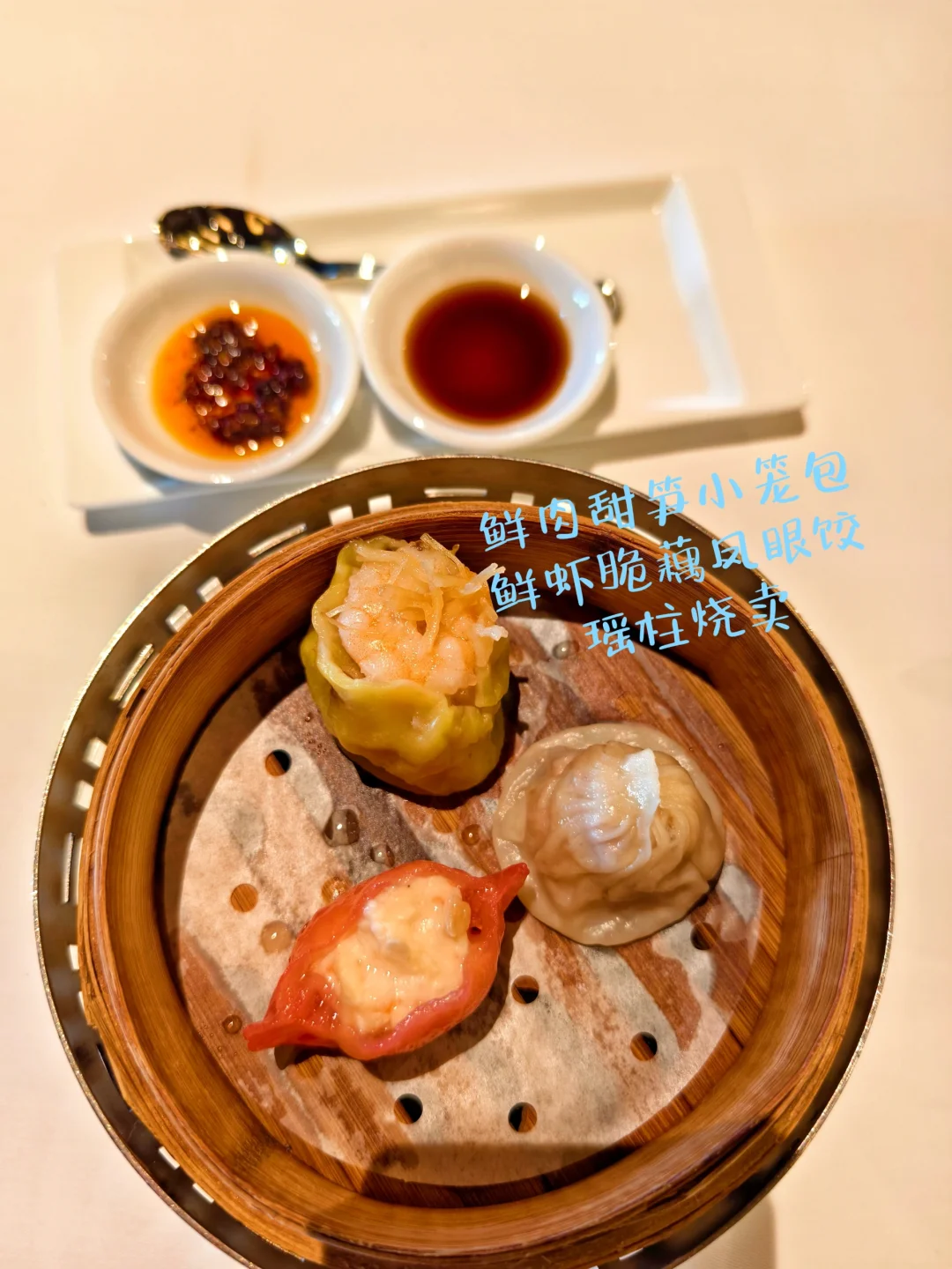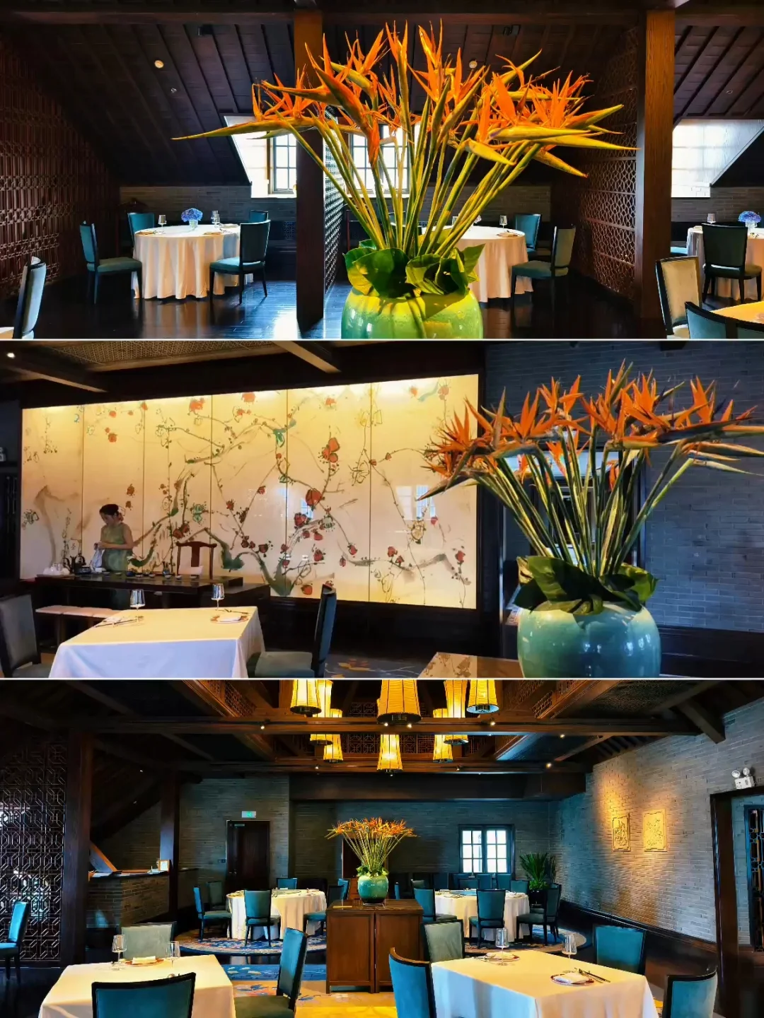 🔥蔚景阁中餐厅,位于上海外滩华尔道夫酒店(原上海总会大楼)5楼,是一家主打粤菜、客家菜并融合本帮特色的高端中餐厅。 🔥餐厅身处欧式风格的外滩建筑阁楼,室内却满满中国古雅意趣,中式艺术风格的设计与建筑传统结构相互辉映。透过老虎窗,还能远眺黄浦江和陆家嘴的摩天高楼,历史与现代在此巧妙融合。 🔥今年的秋季迟迟不来,整个秋季餐厅周都处于盛夏高温中,2025年秋季餐厅周更适合叫夏季餐厅周吧? 🔥餐前小食是腰果,时令水果只是一颗西梅,有点敷衍?[笑哭R]然后上了三款点心:鲜肉甜笋小笼包、鲜虾脆藕凤眼饺、瑶柱烧卖。 🔥汤是海鲜酸辣汤,主菜是鸡汁大黄鱼蒸山药、山茶有盐蒸走地鸡。主食是发酵番茄酸汤面,甜品是芒果西米露,其实也就是杨枝甘露。 🔥总体来说味道还是可以的,就是量有点少,而且主菜是二选一,并不是按位上的。