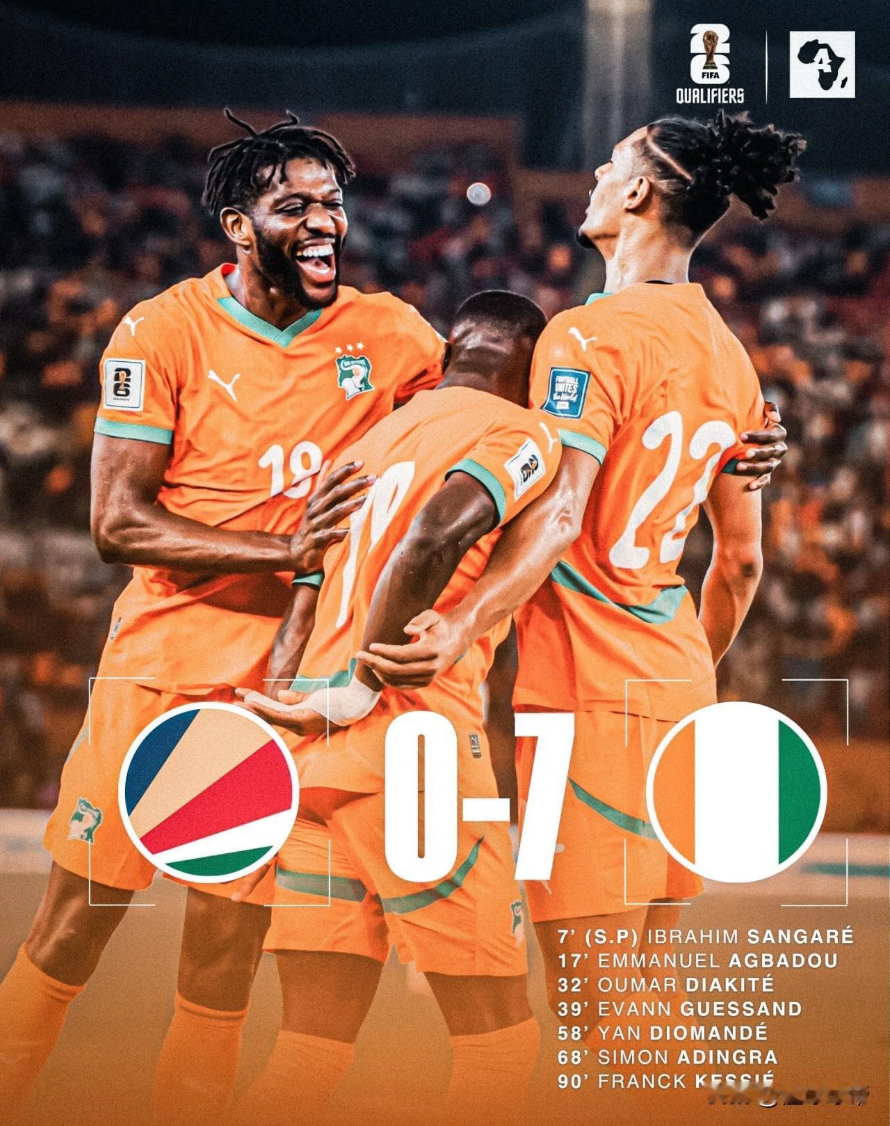 可惜德罗巴不在了,科特迪瓦时隔12年即将再次闯进世界杯! 在本轮非洲世预赛上,科特迪瓦7-0大胜排名垫底的塞舌尔,继续以1分优势领跑积分榜,只要最后一轮拿下肯尼亚,科特迪瓦就能施工12年再次重回世界杯。 德罗巴曾经带着科特迪瓦连续参加了2006,2010,2014三届世界杯,可惜都没有小组出线,德罗巴退役以后科特迪瓦也再没有进过世界杯了,但是现在终于又要重回世界杯了,德罗巴却已经早早地退役了。