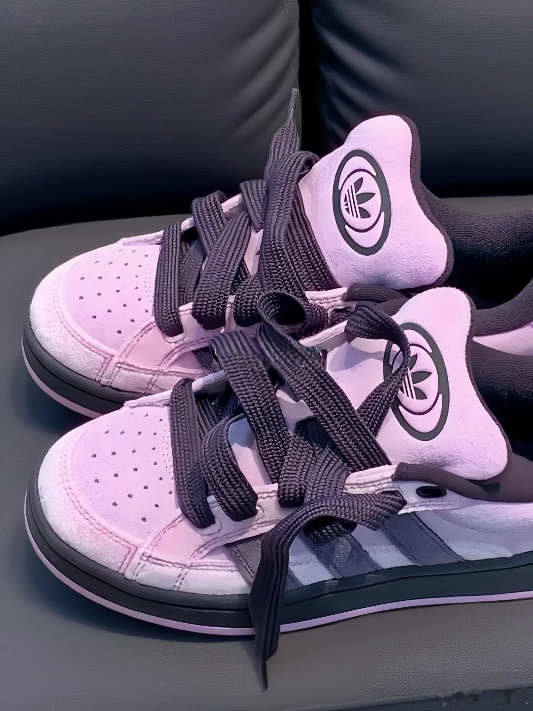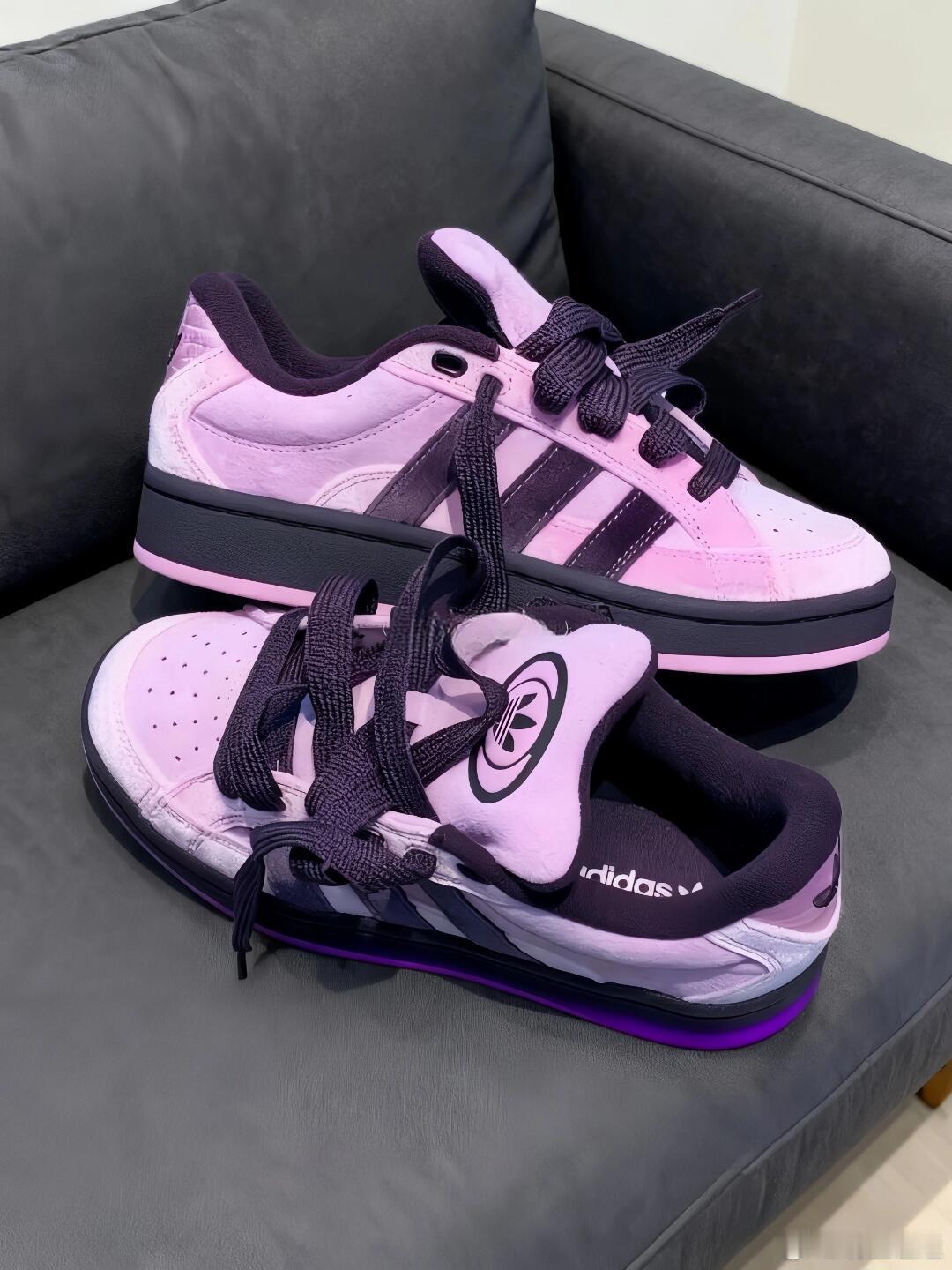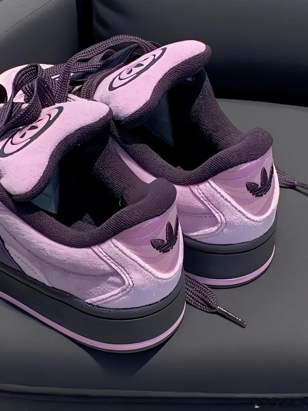 这双阿迪达斯运动鞋以其柔和的粉紫色调,瞬间营造出甜美而时尚的氛围。鞋身采用质感丰富的麂皮与透气网布拼接打造,侧边标志性的深紫色三条纹与鞋舌上的圆形品牌标识,彰显了经典身份。独特的叠放造型生动随性,黑色鞋底与后跟处一抹亮眼的荧光紫色形成巧妙碰撞,为整体注入活力细节。它完美平衡了复古运动风格与少女感,无论是日常出街还是休闲搭配,都能成为一抹温柔又个性的焦点。时尚鞋履SOTD鞋控的日常