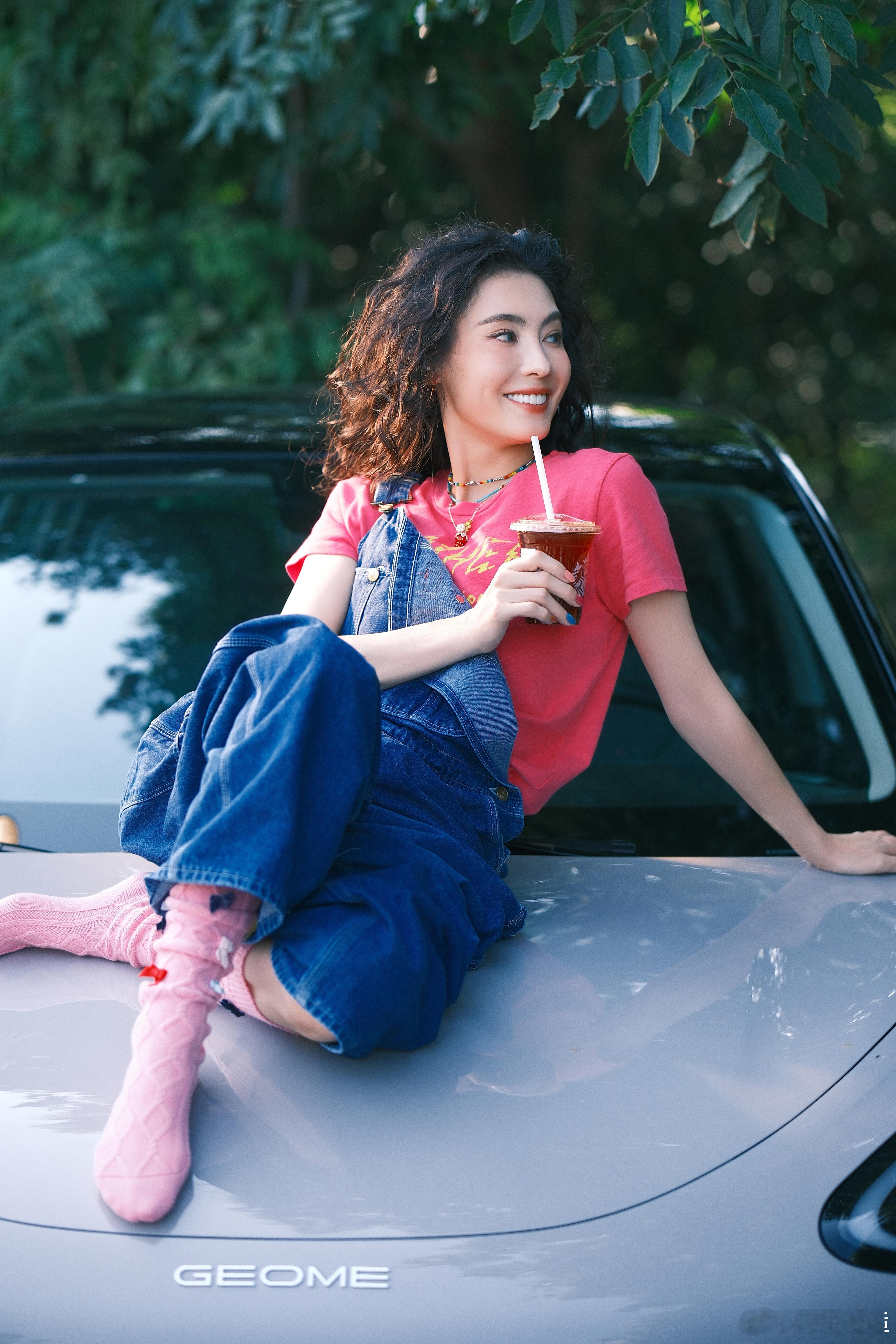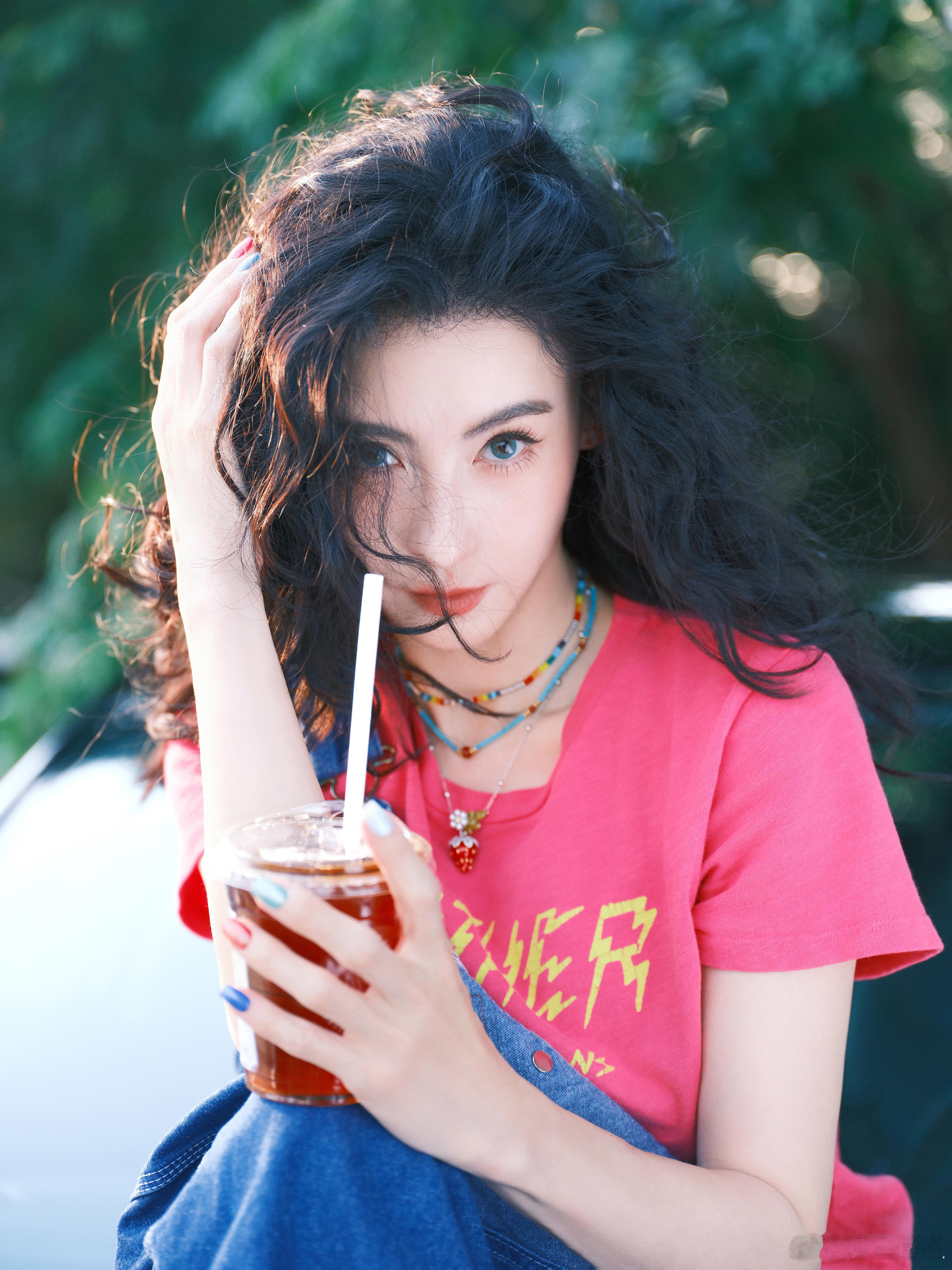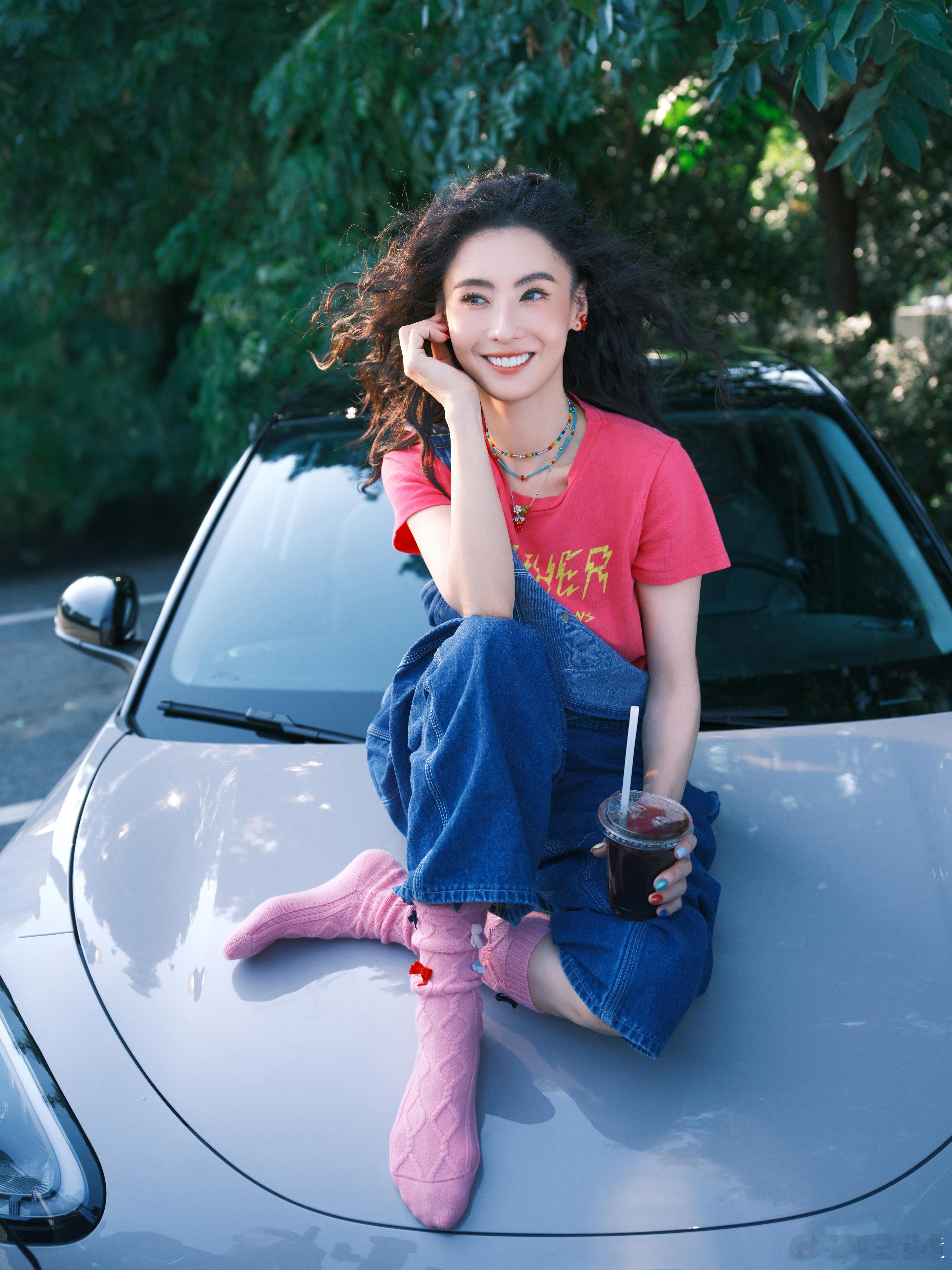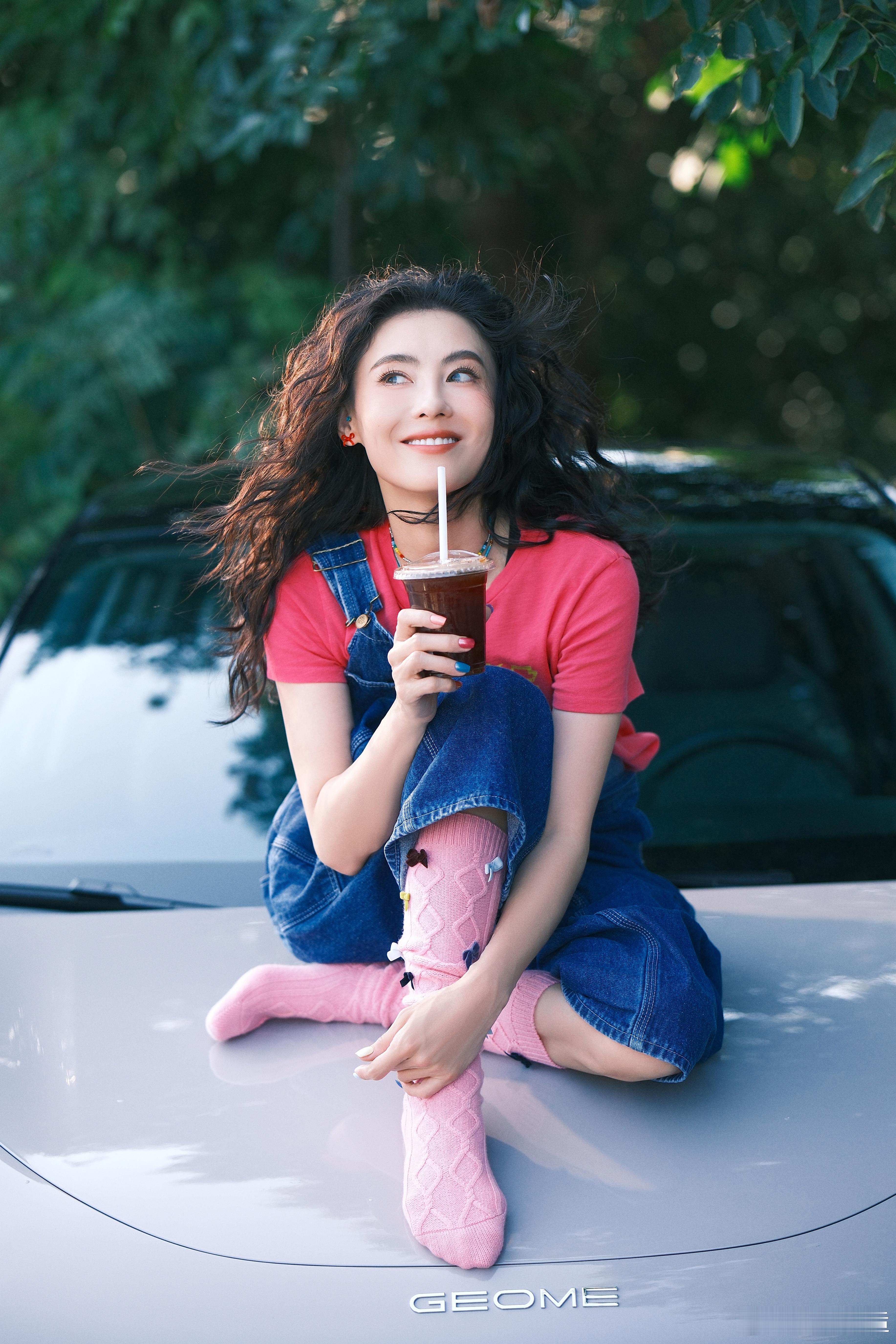 张柏芝很有生命力的美 红T配背带裤元气满满!卷发随风飞扬,咧嘴笑时眼里有光,手捧冰饮仰头望的瞬间,像被阳光吻过的少女,鲜活又热烈,这状态真的好绝~