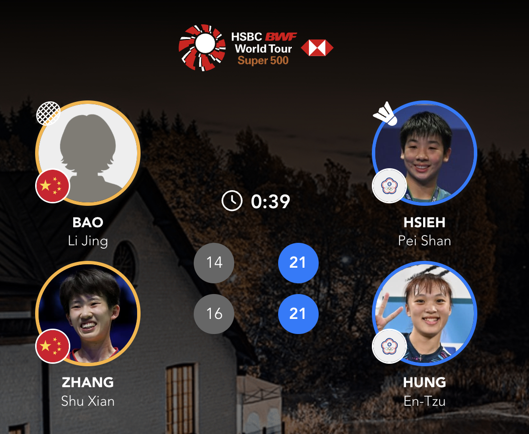 张殊贤/鲍骊婧🇨🇳 14-21、16-21 谢沛珊/洪恩慈