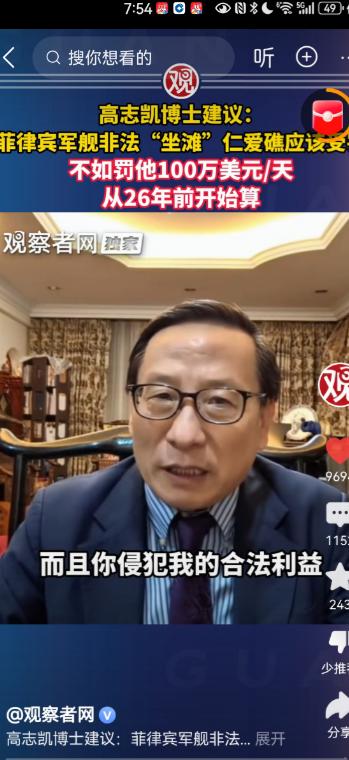 这个主意太绝了!罚款菲律宾坐滩船只100万美元天! 著名学者高志凯教授建议:中
