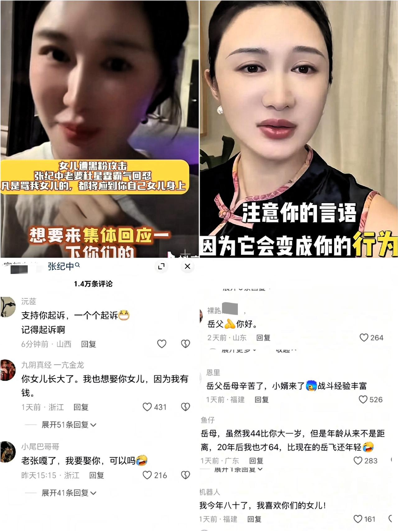 著名导演张纪中妻子,连夜发视频痛哭流泪声称要把所有诋毁我的网友告上法庭。 近日老公发张女儿生日照片,评论区就有很多网友表示要娶她女儿,这波操作直接把当妈的逼到崩溃——作为妈妈,看到那些评论我心里像被扎了一样疼。更可气的是,说这些话的大多是四五十岁的人,居然拿我才一岁的女儿开玩笑,我实在忍不下去了。 我已经收集好所有证据,一定要让这些人付出该有的代价。这么多年,我一直被网友恶意诋毁,甚至有人跑到我参加活动的地方当众谩骂。我真的想不通,我靠自己的努力过好日子,从没妨碍过谁,为什么他们对我有这么大的仇恨? 这些不公平的指责和谩骂,早就打乱了我的正常生活,连我身边的人都受牵连,尤其是老家的父母,现在出门都觉得抬不起头。我承认老公年纪比我大,但这绝不是你们拿我女儿调侃的借口。所以这次我不会再退让,一定要让他们为自己的行为负责。