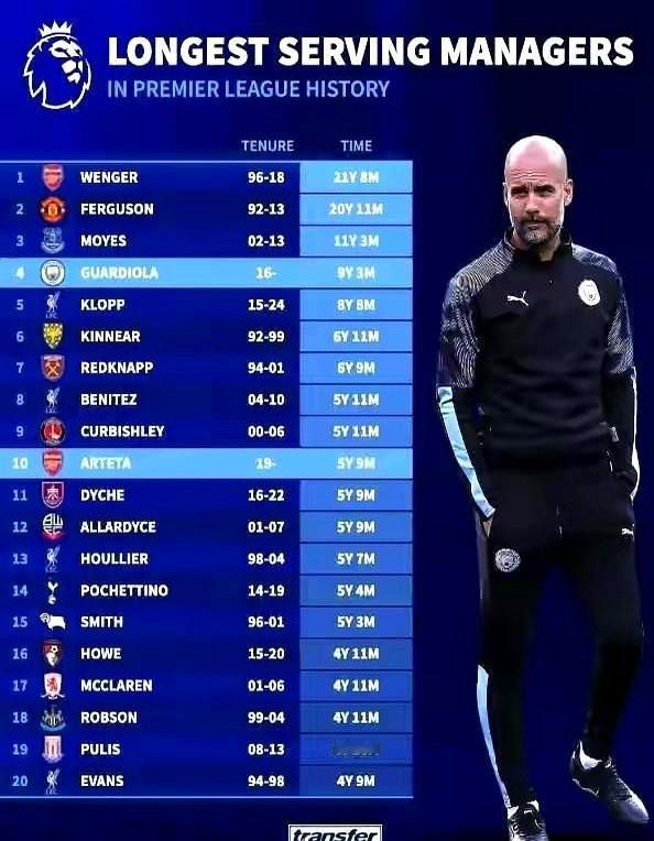 你敢信? 瓜迪奥拉任曼城主教练已9年3个月,英超主教练生涯长寿程度仅次于温格、