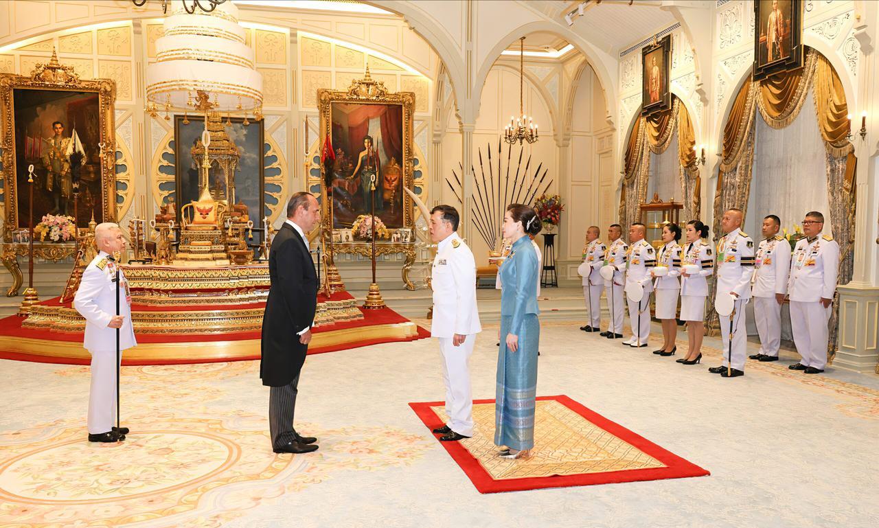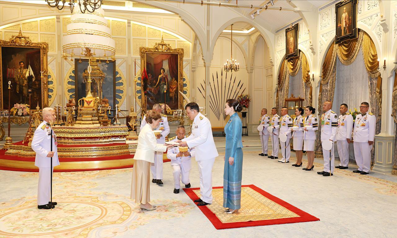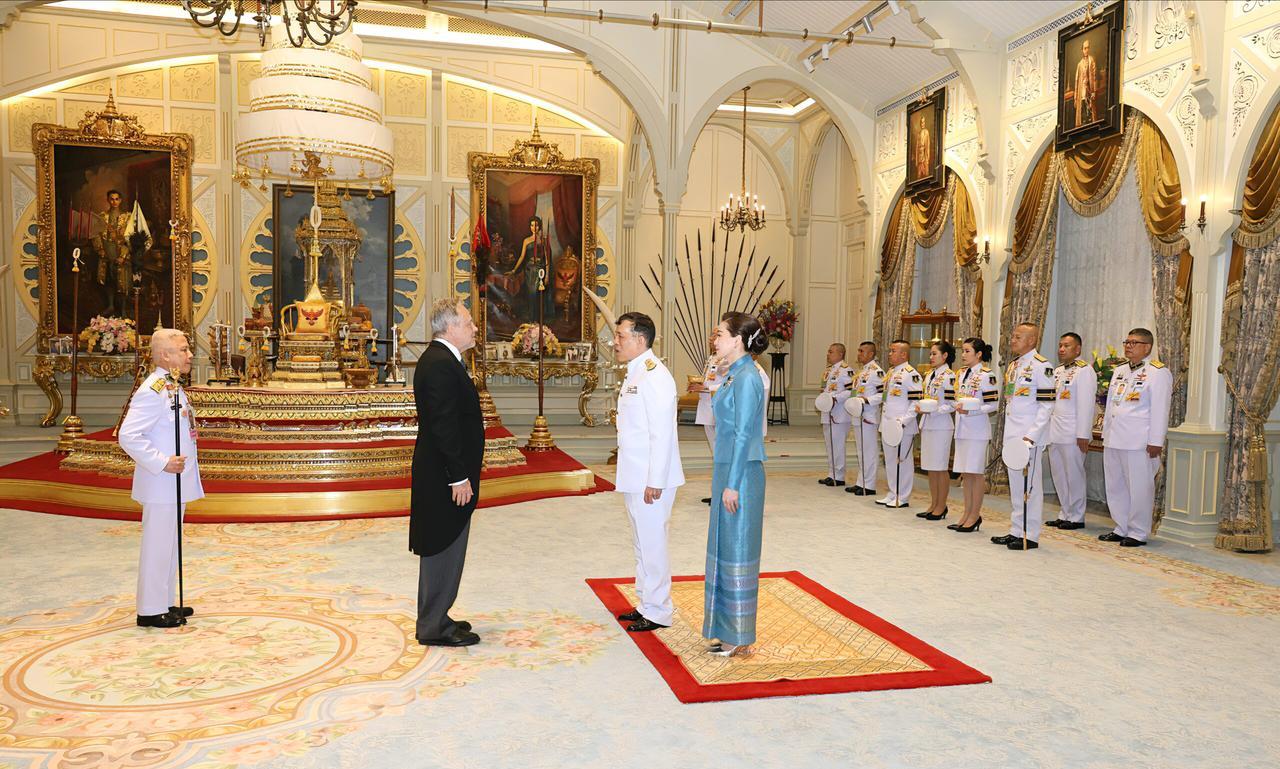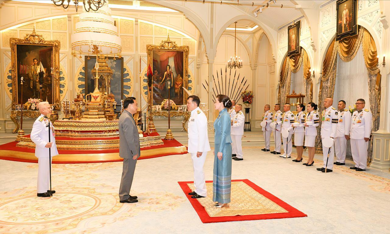 查尤特拉陪泰王出席国宴,小妾登上外交舞台 泰王和苏提达,在王座大厅接见六国驻泰国