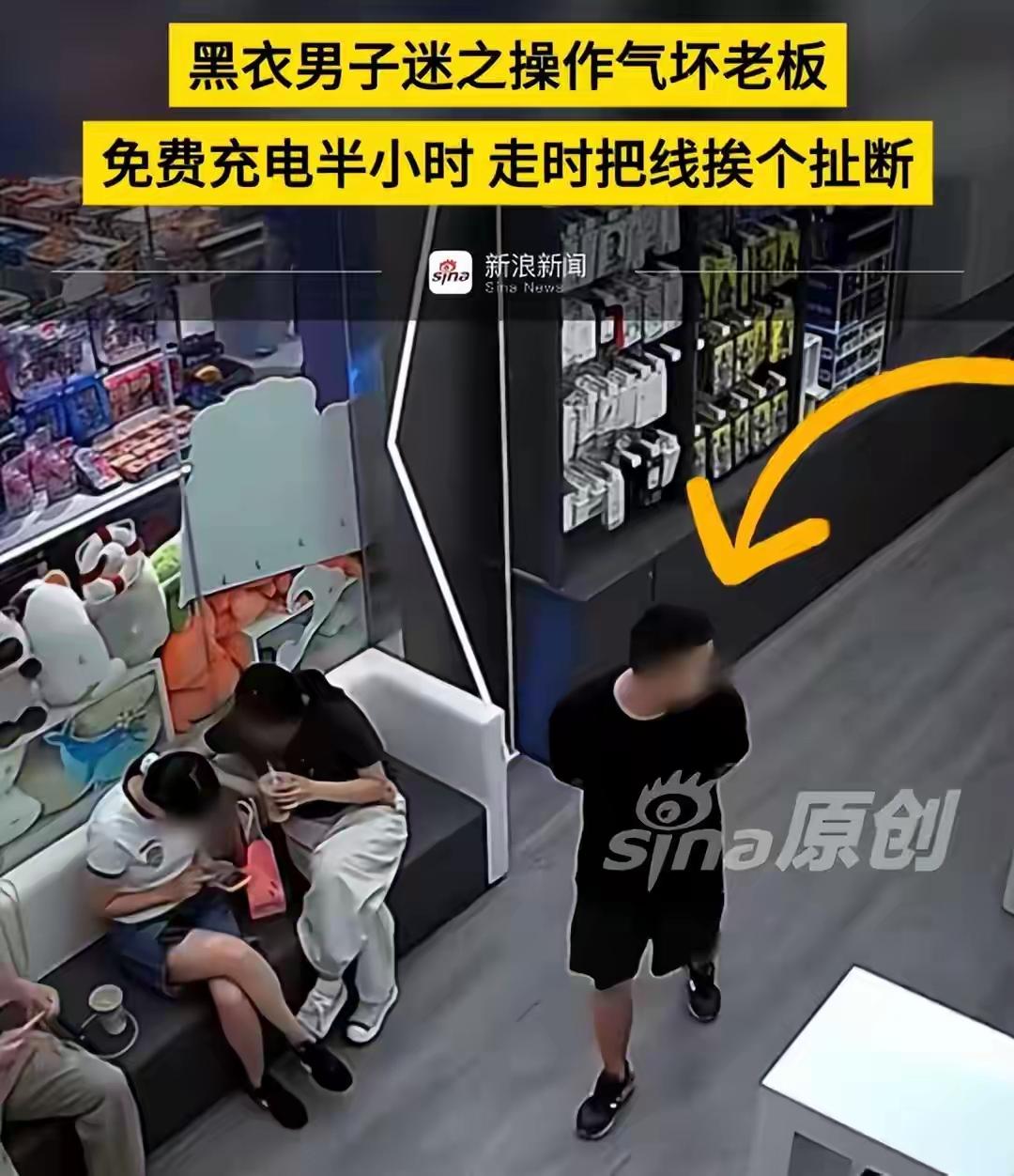 免费充电遭恶待:烟台店主善意换恶行,扯线塞糖仅是冰山一角 10月4日中午,山东烟台万达广场一手机店,老板石先生好心允许四名操东北口音的外地游客(两男两女)免费使用店内充电区,该区域是他专门为游客准备的,配有沙发和齐全充电线,平时从未出问题。 可等石先生忙完从里屋出来,却发现两根充电线被扯得铜丝外露、彻底报废,沙发缝里还粘着块抠不下来的嚼过的口香糖。查看监控后他气得手抖:画面显示黑衣男子动手扯断电线,白衣女子顺手将口香糖塞进沙发缝,另外两人全程冷眼旁观。 石先生随即报警,警方查实四人是哈尔滨游客且已离开烟台,因涉案金额小,按行政案件处理,并帮他找到黑衣男子肖某鹏的联系方式。但石先生打电话过去,对方一句“打错了”就挂断。 气愤的石先生将监控视频曝光,引发网友怒评,称其“践踏别人善意”“享受方便还搞破坏,太丢人”。迫于舆论压力,肖某鹏主动联系石先生,却非真心道歉,反而反咬一口,称“老板踹凳子声音大吓到我们,你就没错?”,这番说辞更引网友怒斥“脑回路清奇,恶人先告状”。 更让人生气的是,随着视频发酵,不少网友爆料:扯断充电线、塞口香糖只是这几人的“小恶”,他们过往的恶行远不止这些,妥妥是“恶人有恃无恐”的现实写照。 编辑‖夏雨 文‖夏雨