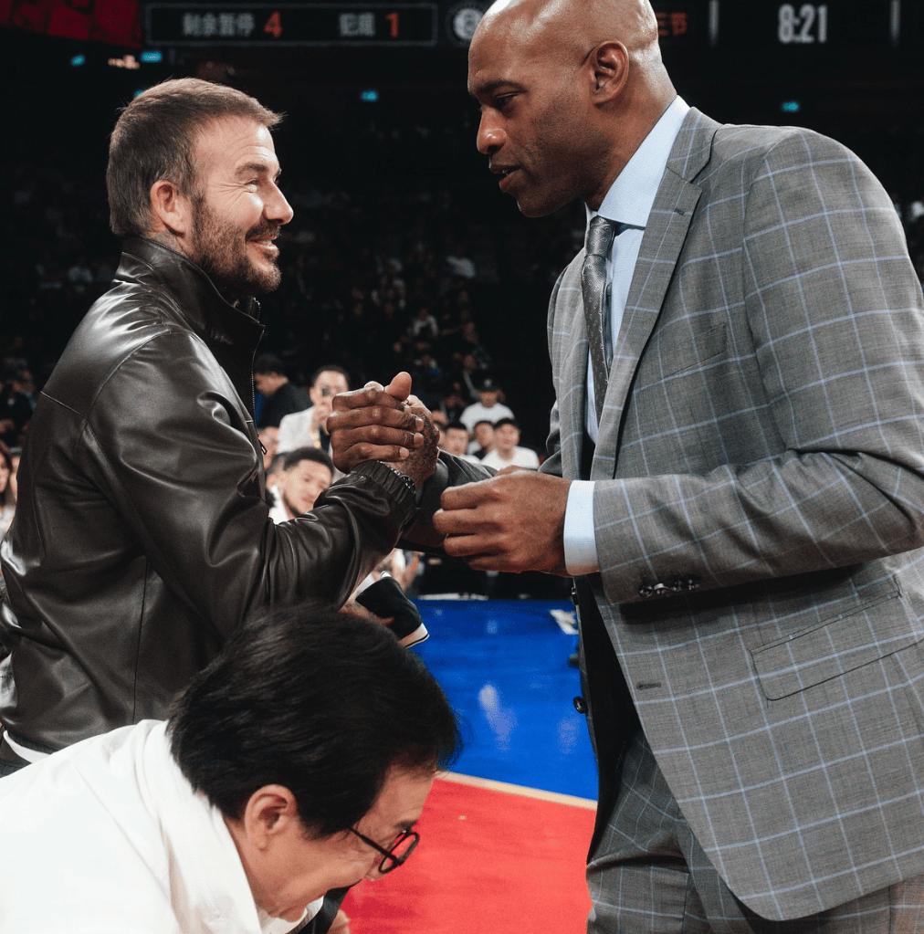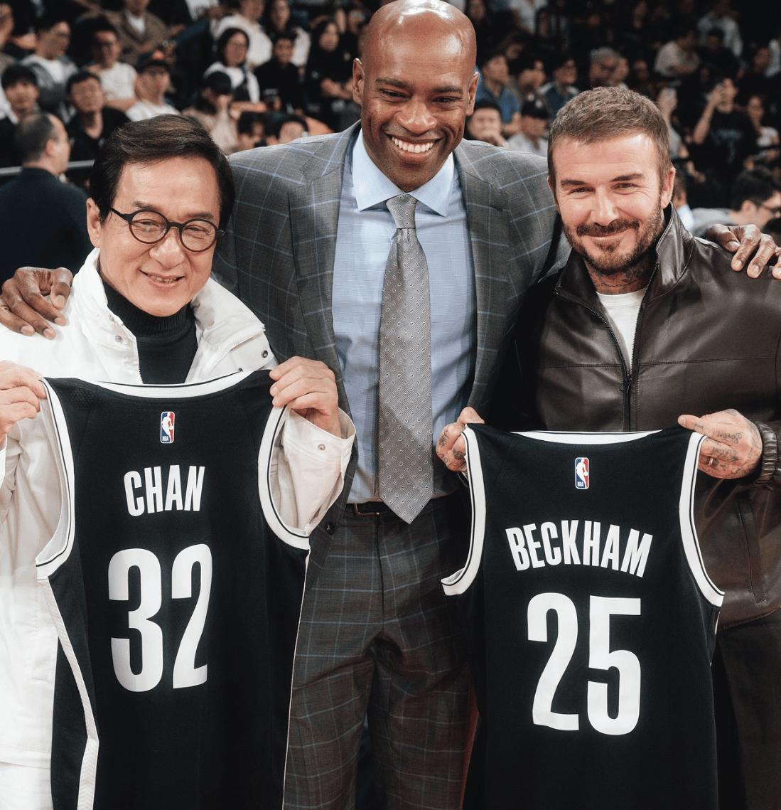 昨天NBA季前赛可太有看点了,重量级巨星云集,名气最大的巨星当属成龙,还有奥尼尔,姚明和贝克汉姆。篮网社媒都晒出了成龙和贝克汉姆场边观赛照,还获赠了篮网球衣,篮网附文“3个GOAT”,这排面直接拉满。 赛后贝克汉姆还晒出与姚明、成龙和奥尼尔的合影,说见到了三位传奇。想想也是,一个是功夫巨星,一个是足坛名宿,再加上篮球界的大佬们,这跨界联动太绝了。不同领域的顶级人物聚在一起,这场比赛不仅是篮球的盛宴,更是一场跨领域的大联欢。