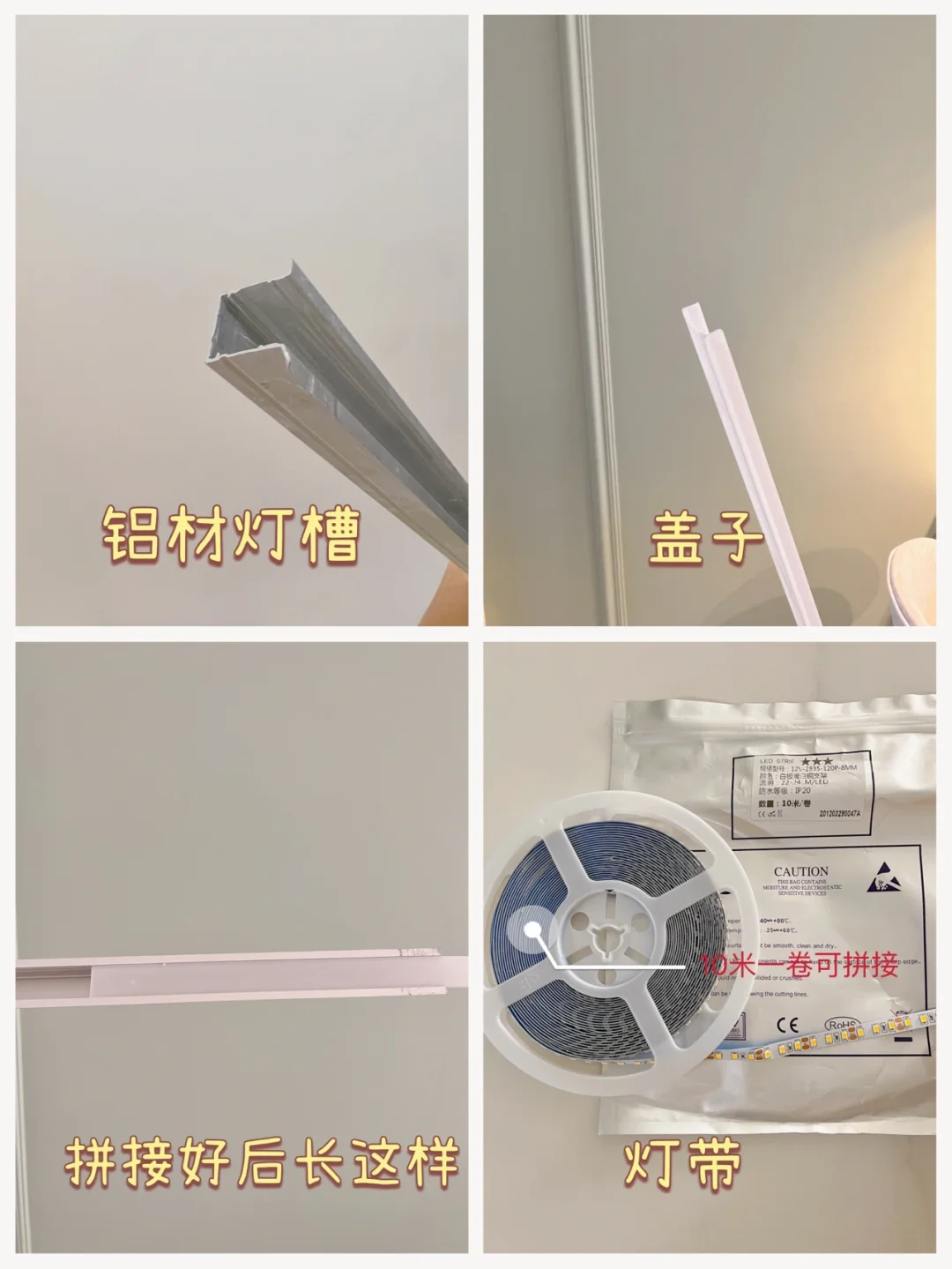 1⃣️需购买:铝材灯槽+盖子+灯+变压器;
