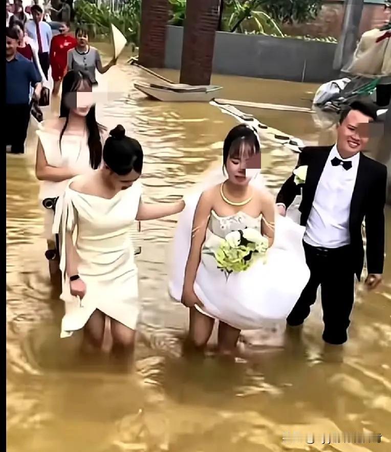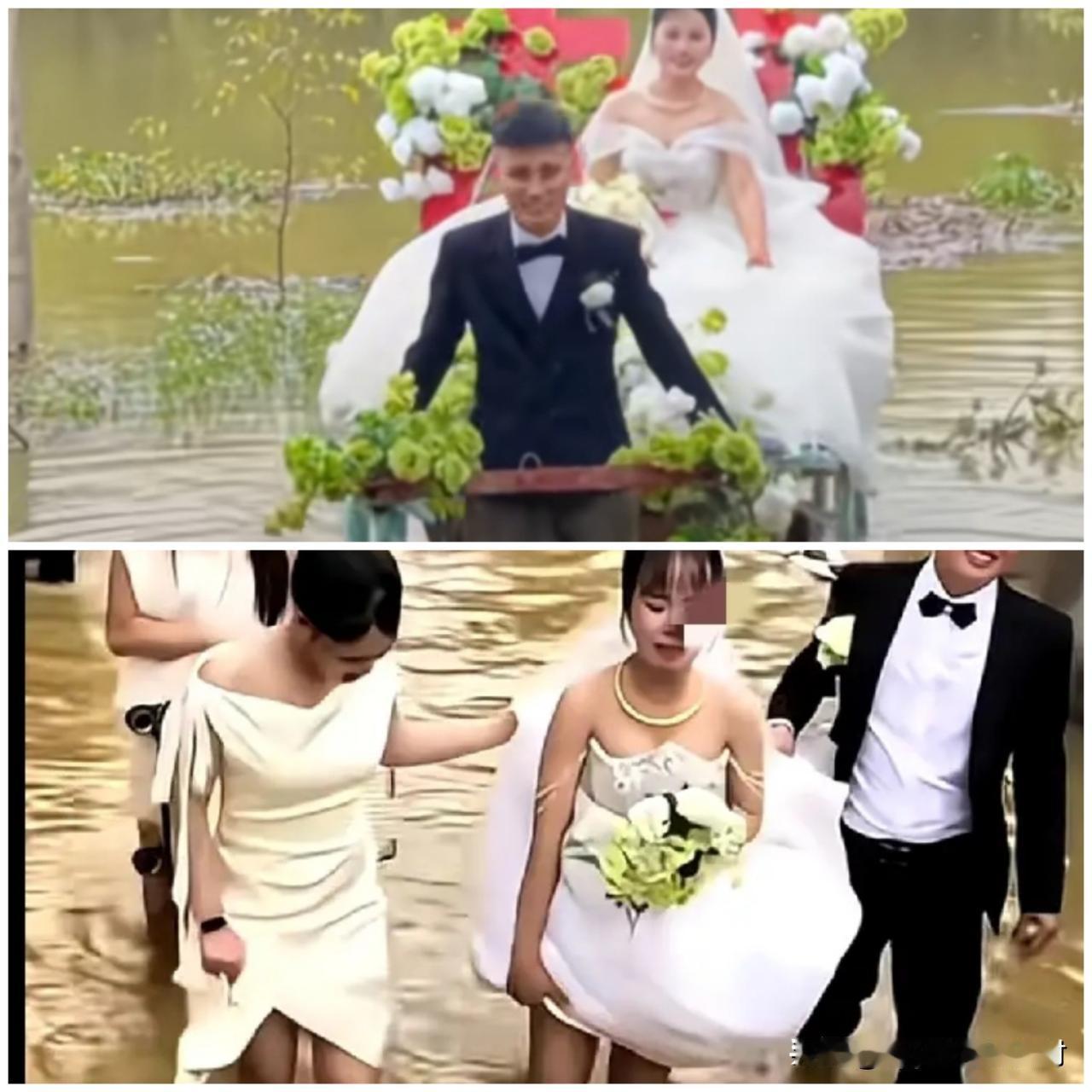 同样是一场大雨,改变了婚礼的流程!但新郎和新娘,涉水去婚礼现场的表现,却大不相同! 一对是涉水携手共进,一对是新郎拉车,为新娘遮风挡雨!友友们,他们哪对看起来更幸福?