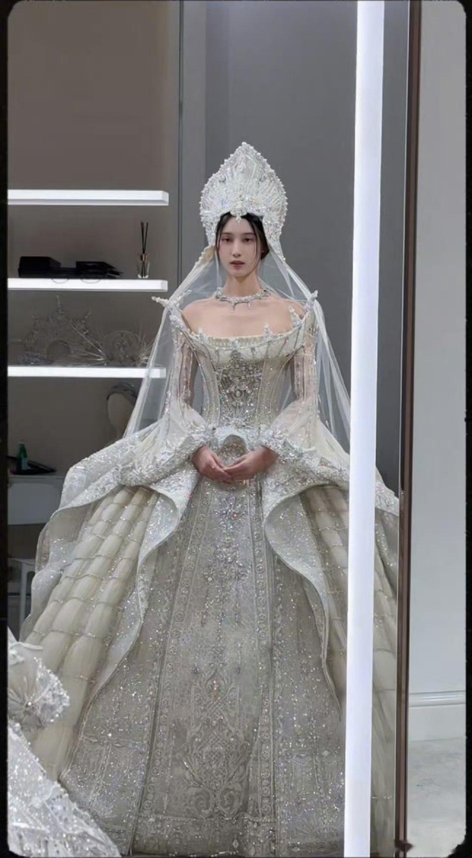徐艺洋发了试婚纱的花絮视频,一共试了12套你们比较喜欢哪套呢