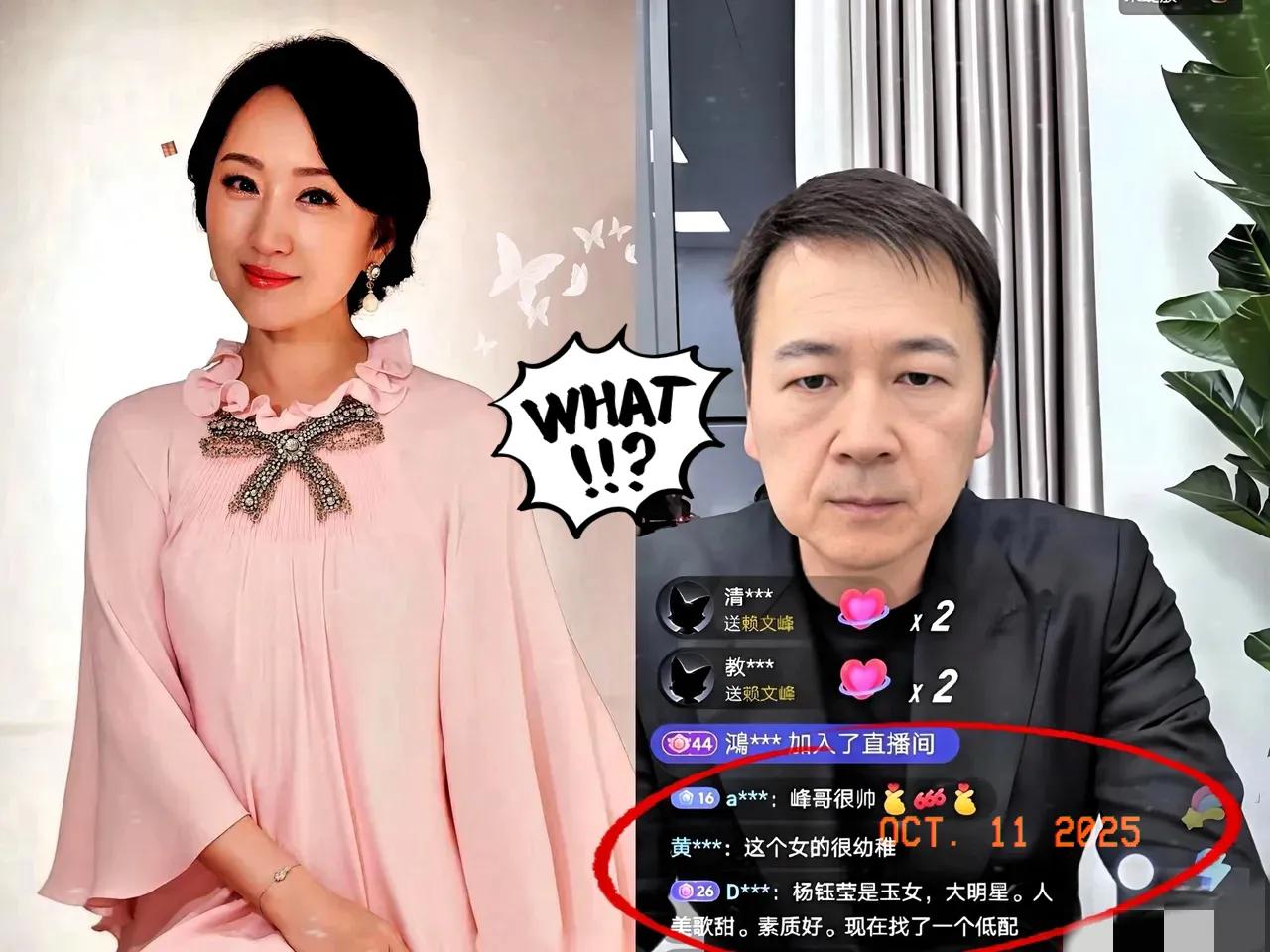真不是缺热度,是缺德! 赖文峰现任女友居然在直播间暗戳戳讽杨钰莹“羊咩咩”、年老色衰。 这操作看得人一脸懵,俩人早八竿子打不着,咋就非得扯人家出来踩一脚 ? 再看看杨钰莹,和赖文峰分手二十年,面对追问始终体面,只说曾相爱、和平分手,把痛苦藏起来,给足前任尊重 。 可赖文峰呢?看着女友辱骂、消费自己前任,全程装聋作哑,这俩人一唱一和,哪是谈恋爱,分明是借别人名声博眼球,嘴脸太难看 。 感情里最该有的体面,是分开后互不打扰,而不是拿前任当垫脚石。 他俩这样消耗别人的善意,只会让大众越看越反感 。 你们觉得这种借前任博关注的行为,是不是真的没底线?