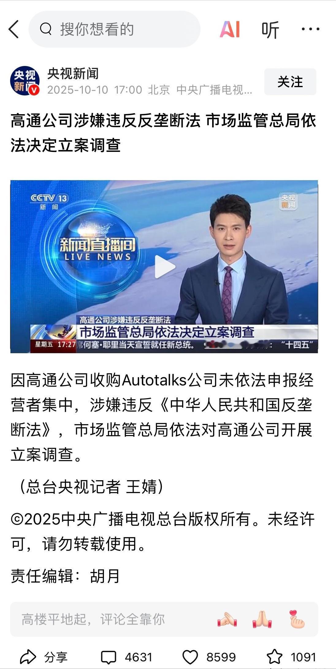 新凯来一来,高通不通! 火药味越来越浓了! 想借韩国🇰🇷的地盘在APEC峰会上见面, 就要拿出诚意来! 无端盘查遣返我公民不说,更有甚者我方途径俄罗斯🇷🇺的航班都被禁止🚫往返美国🇺🇸, 总想着给别人来个下马威,把自己的调门起得很高…… 可惜,龙哥支棱起来了,不吃这一套: 你的大豆我不买, 你的船舶我收港务费, 你的稀土进口我管制, 你的高通芯片我调查, 主打的就是一个平起平坐,有来有回! 看谁能耗得过谁? 有本事就别见! 最近这气氛,确实有点不一样了。眼看APEC峰会的大幕就要拉开,各方都在琢磨着是不是能借着这个机会见个面,聊一聊。 可这还没见着呢,空气里已经弥漫开一股浓浓的火药味。尤其是当美方放出风声,想借着这个场合进行高层会晤的时候,得到的回应却相当直接:想见面可以,但得先拿出点诚意来。 这话说得不是没有缘由。要说起来,近段时间发生的事情,确实让人有点摸不着头脑。一边说着要沟通,要管控分歧,另一边的小动作却没停过。 最让人诟病的,莫过于对中国公民的无端盘查和遣返。一些留学生、学者,甚至是普通的商务人士,在入境美国时被反复刁难,电子设备被随意检查,问话的方式充满了预设的偏见。 这种做法,无疑是在给两国之间本就脆弱的人文交流设置路障,让很多人心里都结了个疙瘩。 如果说这只是个别现象,那还情有可原。但接二连三的事件,就很难让人用“巧合”来解释了。其中,一个颇具代表性的操作,就是突然禁止了中国航空公司经由俄罗斯飞往美国的航班。 这个禁令看似只是调整了一条航线,但背后的意味却相当深远。这不仅大大增加了航程和运营成本,给往返两国的旅客带来极大不便,更是一种将地缘政治矛盾泛化到民用领域的信号。 总想着在各个领域给别人来个下马威,把自己的调门起得很高,似乎这样就能在谈判桌上占据主动。可惜,如今的局面,早已不是单方面能主导的了。 面对这种局面,显然不能再按老剧本演了。于是,我们看到一系列针锋相对的回应,主打的就是一个“有来有回”。 你的大豆我减少了采购,这可不是一句简单的“不买了”,背后是全球供应链的重新布局和农业市场的连锁反应。 你的船只想停靠我的港口,那就要按照规矩缴纳相应的港口使用费,这既是国际惯例的体现,也是一种经济主权上的明确表态。 这些措施,看似零散,实则环环相扣,传递出一个清晰的信号:合作可以,但必须在相互尊重的基础上。 更有意思的是,博弈的焦点正逐渐向高科技领域延伸。美国一直试图通过芯片禁令来卡脖子,限制中国高科技产业的发展。 那好,你的芯片巨头高通,在中国市场赚得盆满钵满,现在也迎来了反垄断调查。这调查本身,就是依据市场规则行事,但放在这个大背景下,其象征意义不言而喻。 紧接着,一张关于石墨出口管制的新牌又被打了出来,这东西可是电池的心脏,直接戳在了新能源产业的要害上。 这一系列操作,不再是简单的贸易反制,而是直指对方的核心产业优势,意味着这场较量正在向更深层次、更核心的领域演进。 整个局面就像一盘棋,双方都在落子,都在试探对方的底线和意图。美方似乎还沉浸在旧有的思维定式里,认为通过施压和制裁就能让对方让步。 但现实是,这种“极限施压”的老套路,已经越来越行不通了。当对方也开始熟悉并运用这套规则,甚至玩得更有章法时,比拼的就不仅仅是实力,还有耐心和战略定力。 这已经不是谁嗓门大谁就有理的时代了,而是看谁能在复杂的博弈中,更好地维护自身利益,同时为未来的发展留出空间。 所以,APEC的会面到底会不会发生,又会以什么样的形式进行,现在都还是个未知数。如果见面只是为了走个过场,互相念一遍稿子,那不见也罢。 真正的沟通,需要的是放下身段,正视彼此的核心关切,拿出解决问题的实际行动。这场关于“诚意”的博弈,最终会走向何方?是破冰的前奏,还是新冷战的开端?这盘棋,才刚刚进入中盘。你觉得呢?