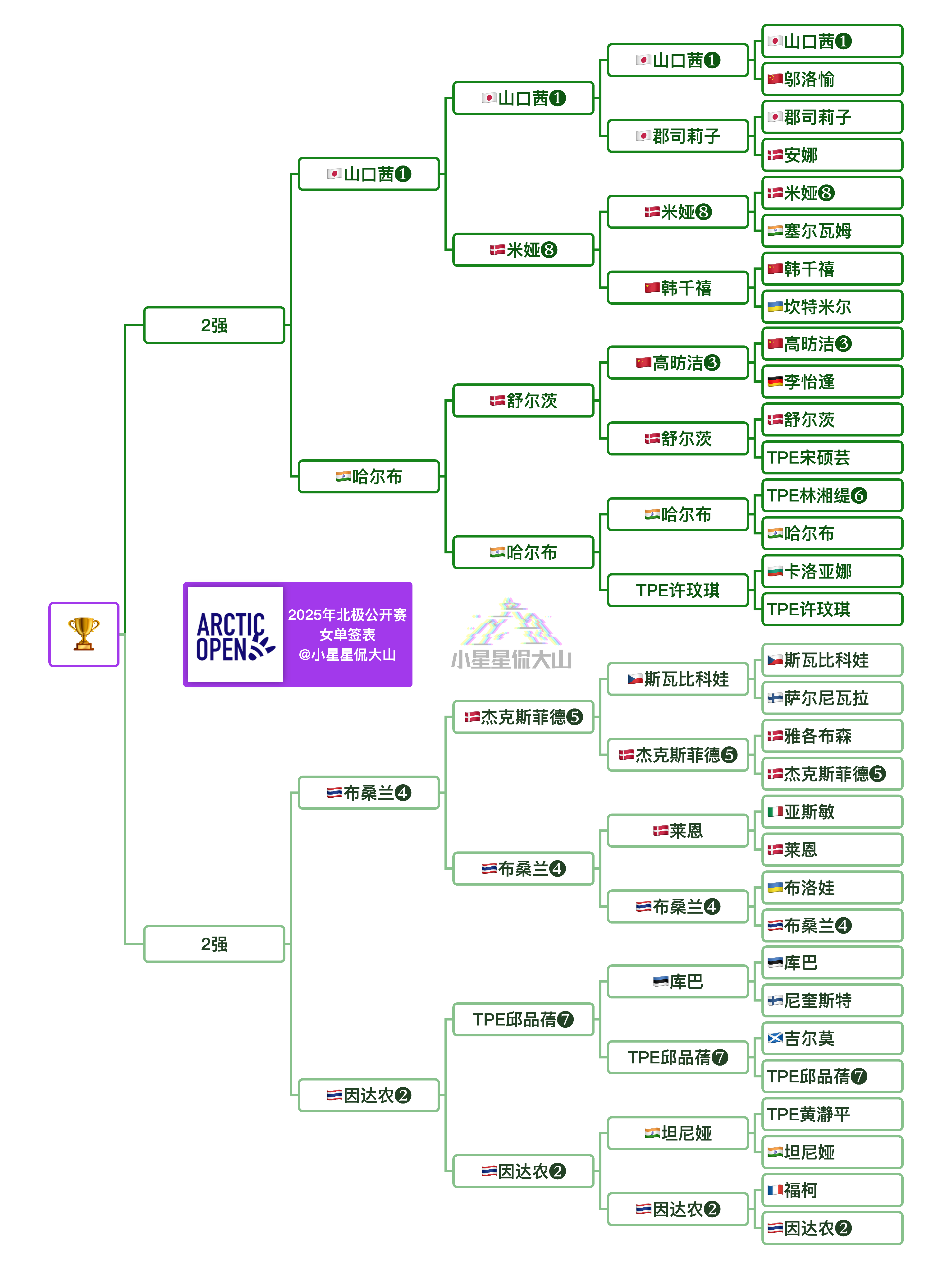 2025年北极羽毛球公开赛 女单4强对阵:
