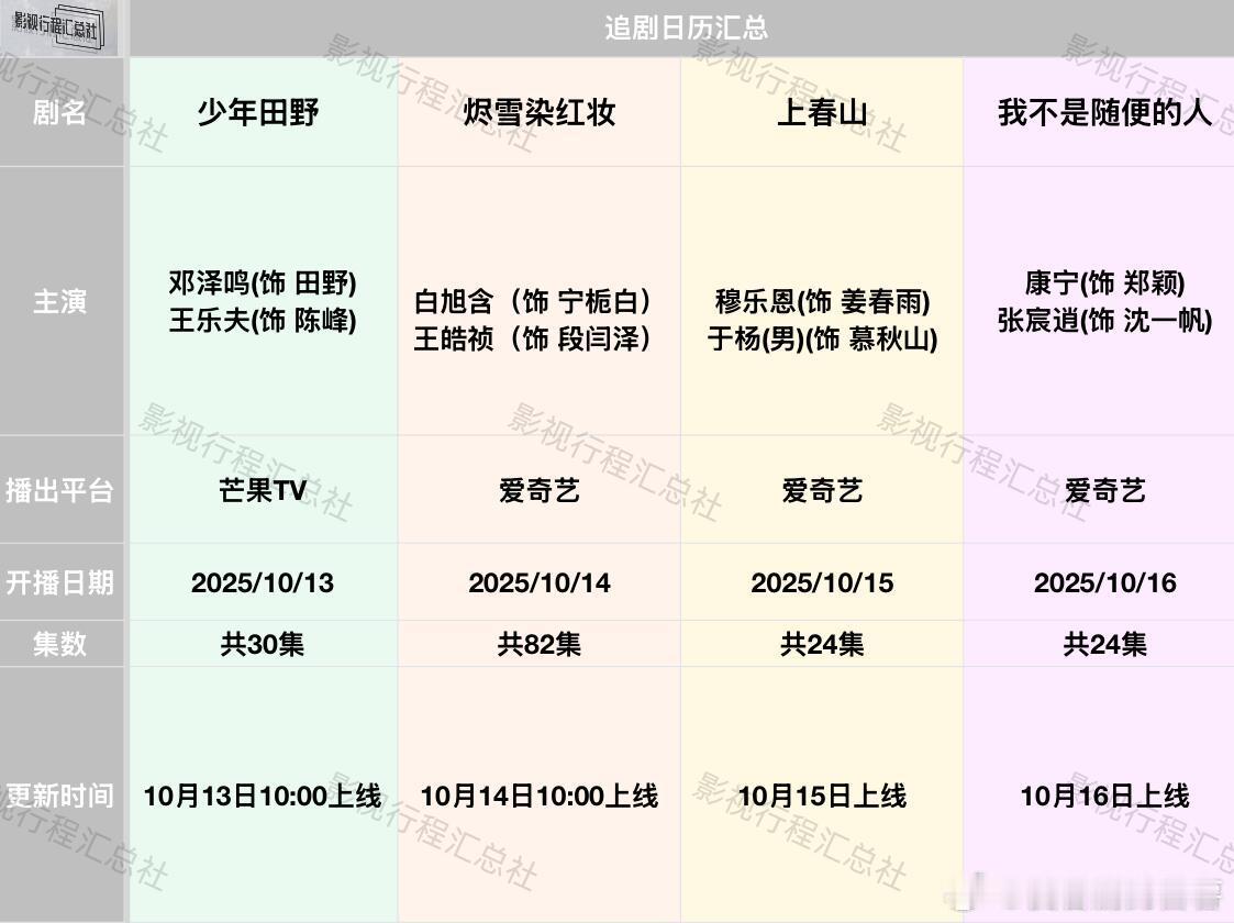 追剧日历更新:10.11-16日开播剧