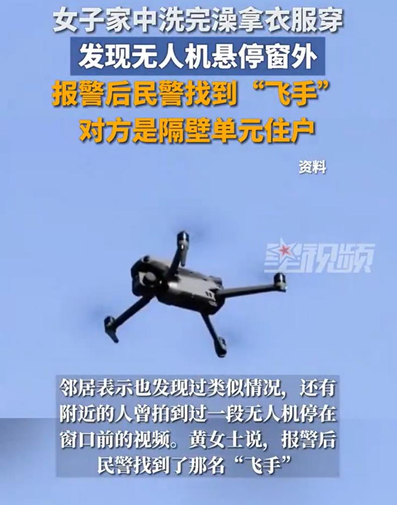 浙江杭州,一位年轻女子在自家浴室洗完澡,没穿好衣服就走到客厅拿衣物。这时,窗外传来一阵嗡嗡声,她抬头一看,竟发现一架无人机悬在七楼阳台外,镜头似乎正对着室内。女子心里一紧,怀疑自己被偷拍了 她和男友王先生租住在这个小区。当天下午三点多,王先生接到女友电话后,立刻联系物业帮忙排查,同时报了警。两人住在七楼,原本觉得楼层不算低,没想到无人机会飞得这么近 她第一反应是有人偷拍,赶紧联系物业排查,还让王先生报了警。 当晚八点多,派出所通知他们,飞手已经找到了,是同小区隔壁单元的住户。调看了无人机的拍摄记录,没有拍到不当画面,所以没有明确证据证明他有偷拍 让人比较无语的点,是有网友质疑:为什么在家里洗澡不拉窗帘 这个关注点显然有点跑偏了,家是最私密的地方,一个人能在家里放松洗个澡,本身就是基本的安全感。拉不拉窗帘不该成为被质疑的理由。如果我们在自己家里都要时刻警惕窗外有没有镜头,那生活的安全感又从何而来? 无人机是个好东西,能航拍、能测绘、能拍风景,但一旦飞进居民区,就得守规矩。随便飞到别人窗外,不仅容易引发误会,还可能侵犯他人隐私 虽说阳台、窗口这些地方看似原本开放的空间,但其实承载着很多生活私密性,就像我们不随意对着别人家窗口拍照一样,操作无人机时也应当主动规避私人区域