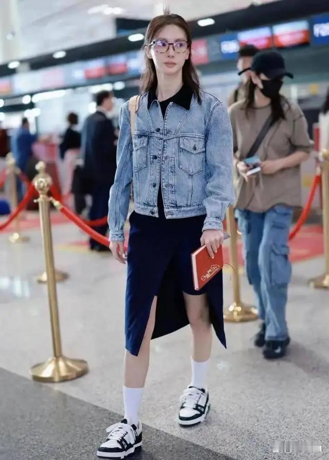 34岁金晨增肥后状态惊艳!一身牛仔外套搭开叉裙,时髦感拉满,既减龄又洋气,气质完全变了样。