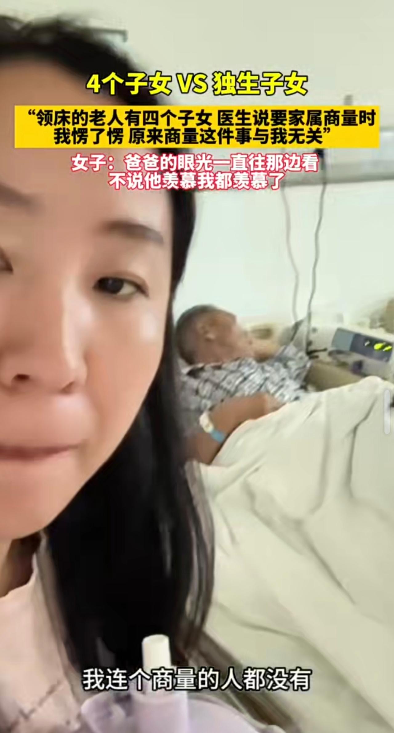 4个子女VS独生子女 我愣了愣原来商量这件事与我无关' 女子:爸爸的眼光一直往