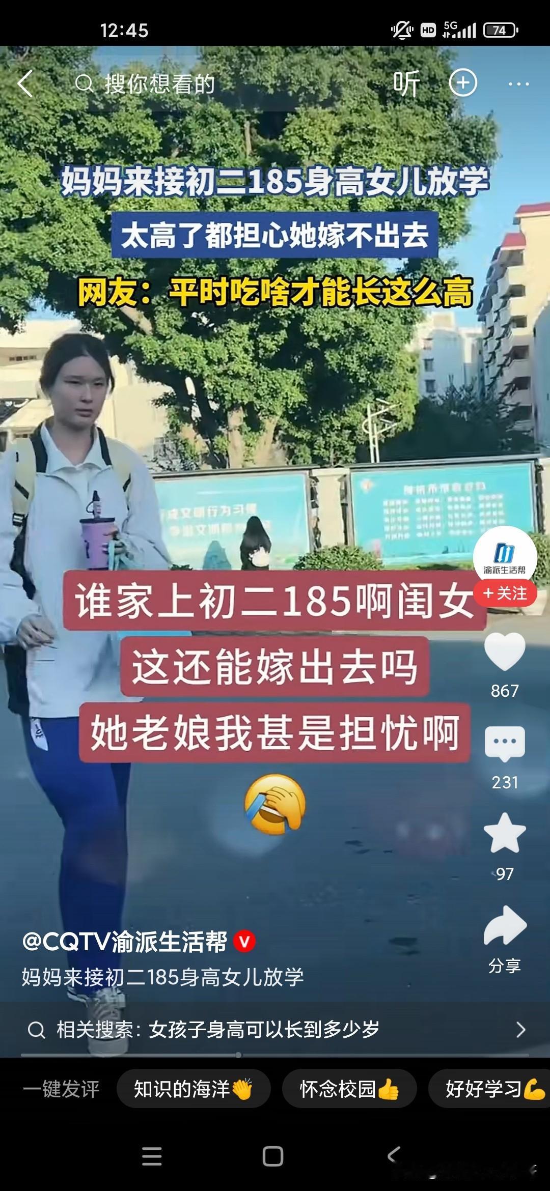 我有一对教篮球的体育同事,他们自己告诉我身高也是一种困扰,身高也是一种劣势,呃,身高也会让人花费会更多一点,比如说他买的衣服一般都买最大号的,有的时候买不了中国版的,只能买美国版,欧洲版的,然后他们自己住的房子也是专门改造的,包括马桶,包括洗漱台,包括淋浴间,包括门框都要比普通人要高一些,因为太低的话,那么容易碰头,包括河北的女生只上初二,身高已经达到1米85,她老娘是为担忧,就担心她将来嫁不出去,太高了也不是好事儿啊!