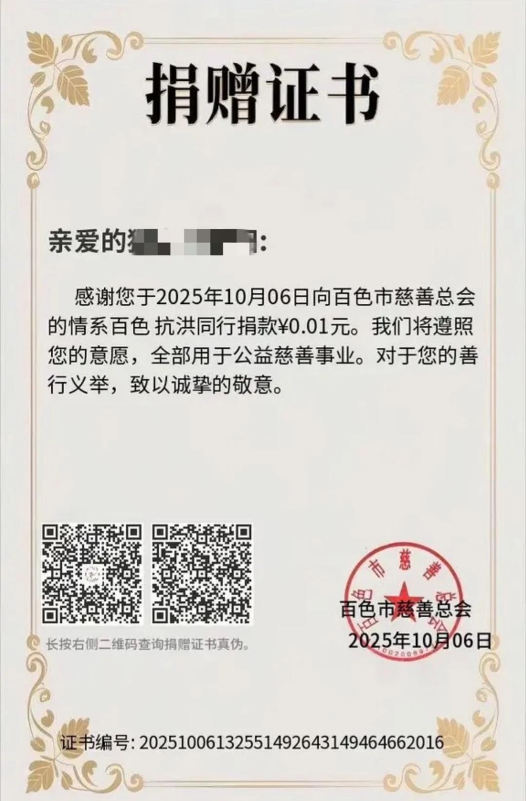 一分钱也值得晒, 不就是想给自己造势吗? 借着广西百色的灾难给自己引流! 出发点是让大家都关注到百色这次灾难,但你这种捐款分量太轻了。虽然说一分钱也是爱,你的动向虽然能引起大家关注百色的灾难,同时你也借着灾难的名义让自己度过难关。说自己有困难,就是想让别人有怜悯之心。其实网友们谁不知道你心里卖的什么药,只是不愿意抨击。爱心人人都有,只是爱心成了自己博取流量的工具,就是让人反感。 说真的,这一分钱的效果,确实让各大媒体博主关注,让大家都能参与到百色这次救援的爱心公益中。百色人民会感激你这份爱心举动。但对看客的观众朋友来说,这就是在给自己做宣传,自己多精明!这破天的富贵来了! 看客们,你们有什么想表达的呢?百色灾区 广西捐款 西林捐款