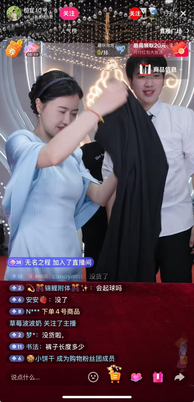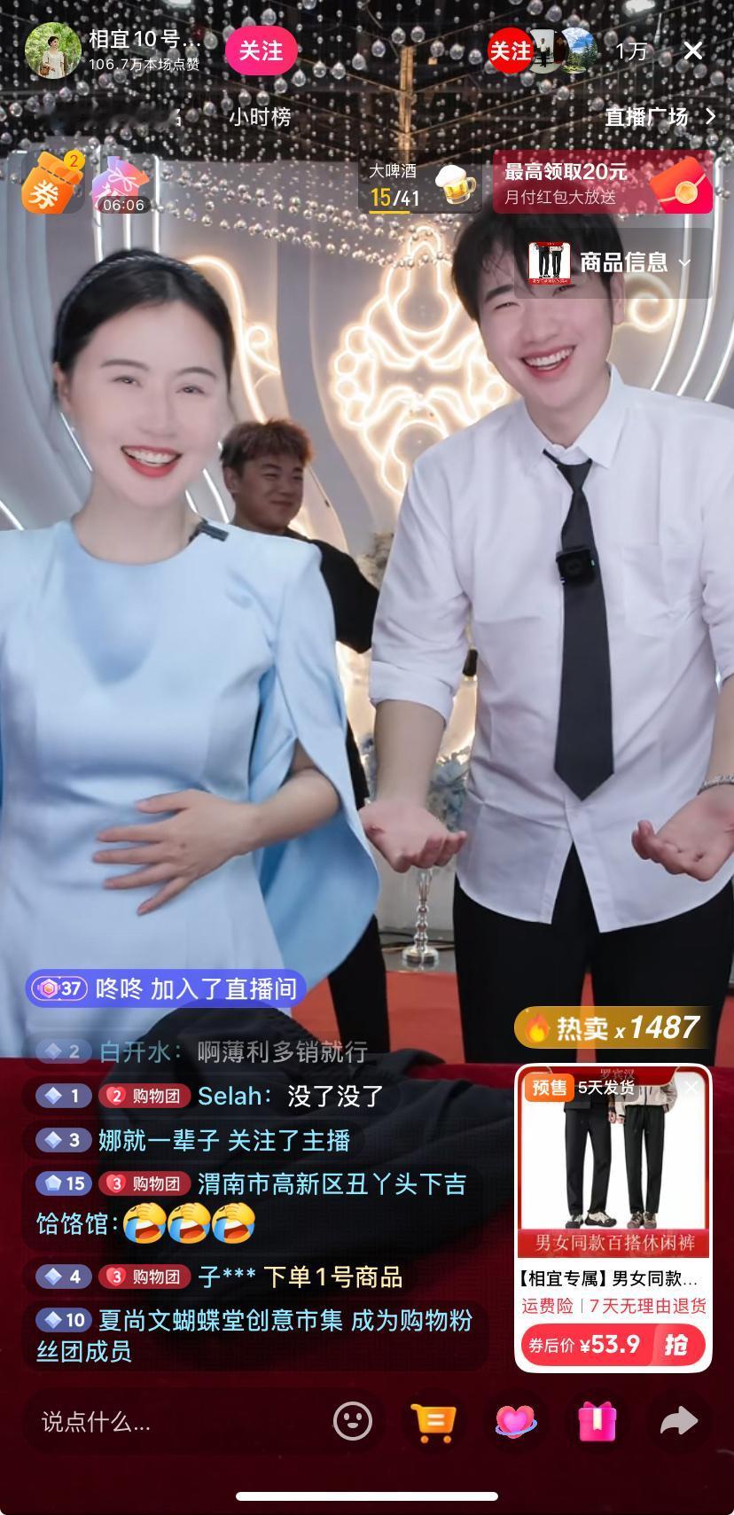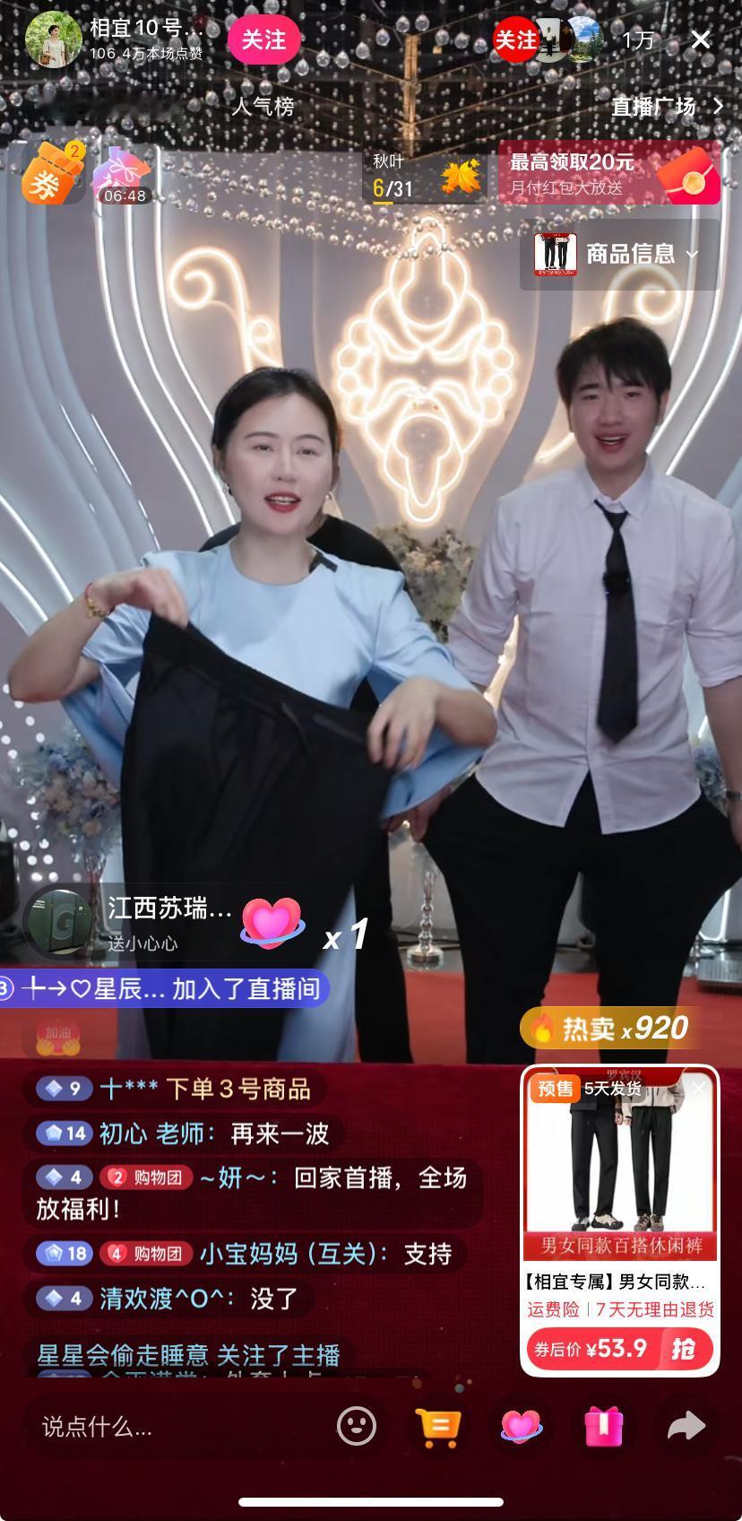 相宜和小烨总在直播间卖裤子,相宜把加绒裤子价格打到了59元,说是让小烨总别赚粉丝