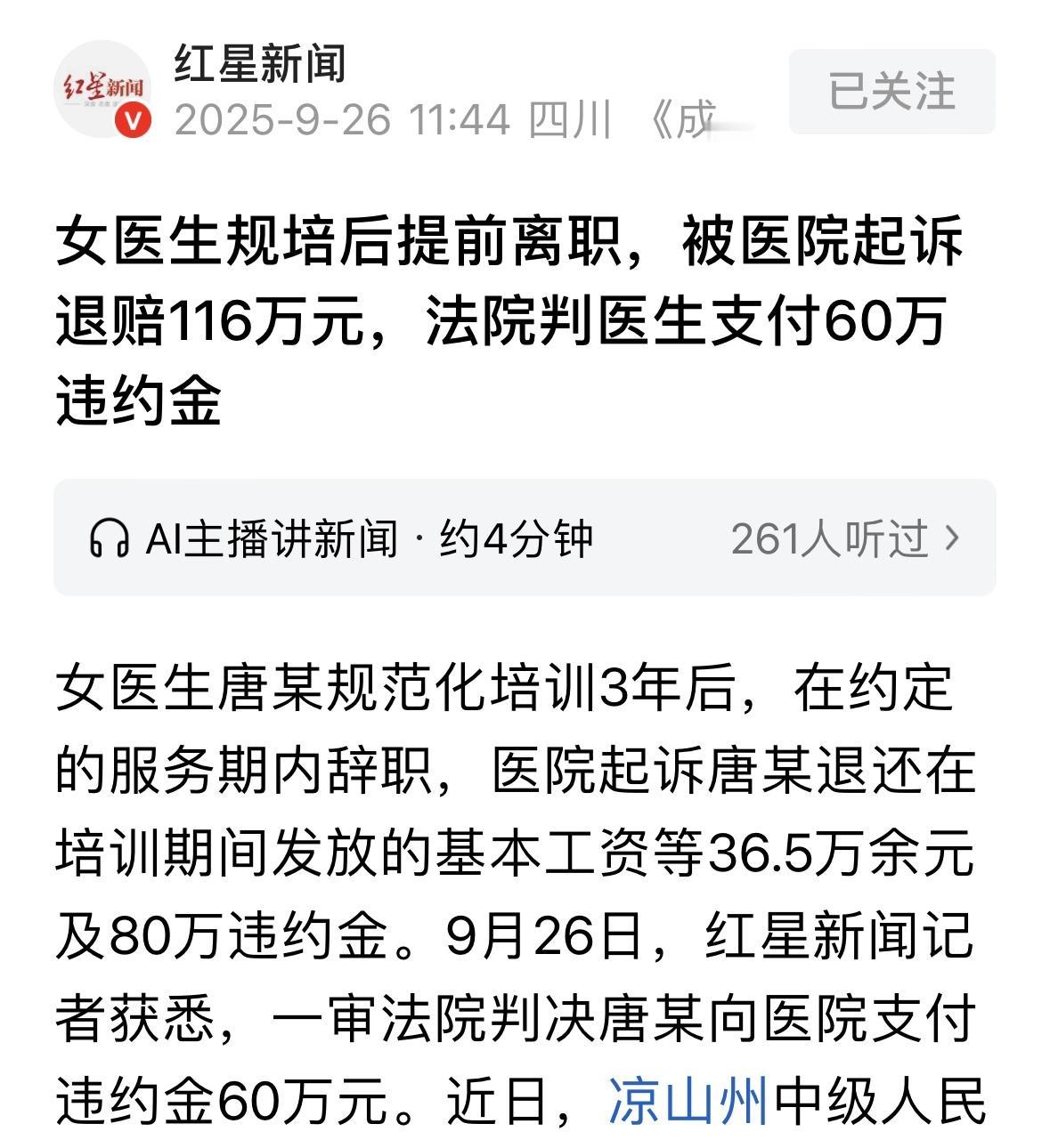 四川凉山,一女医生工作出色,医院送她规培3年,但是有个条件,她学成归来要在医院工