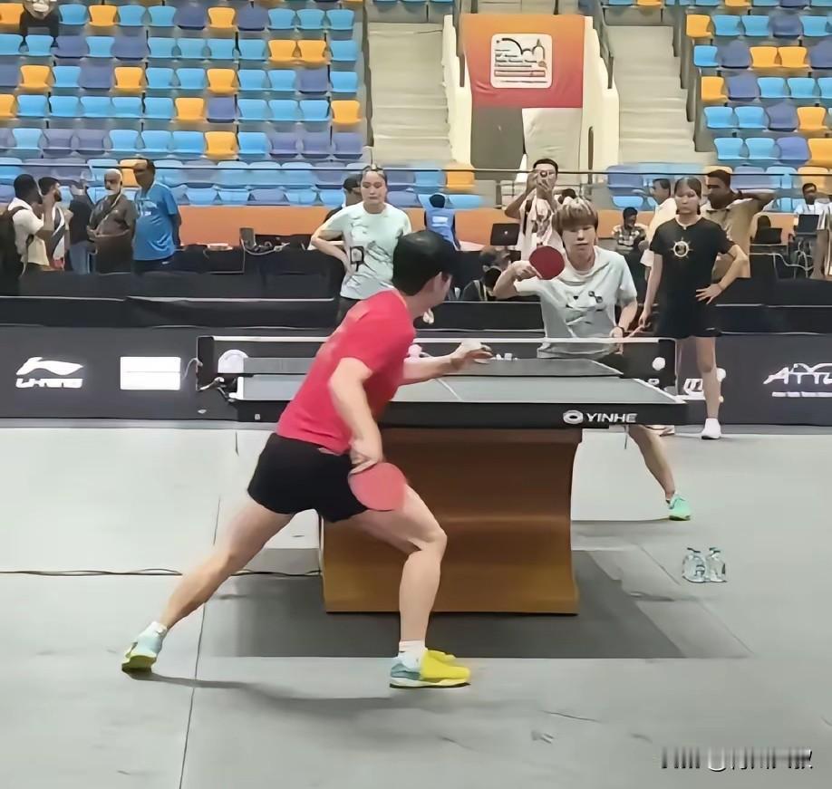 10.11怪不得大迪能轻松打赢桥本帆乃香?原来她最近经常和孙颖莎对练! 昨天莎莎训练的时候, 罕见的穿了队服, 这红色映照着莎莎更白了! 她今天和大迪一起训练, 最近两个人一起训练的频率很高, 我猜又在琢磨打桥本的方法呢! 莎莎累了, 直接喝矿泉水了, 这个水可不是咱带去的, 而是印度本土品牌, 我觉得莎莎应该喝开水, 像大头一样, 那个保温杯, 那样我就放心了!