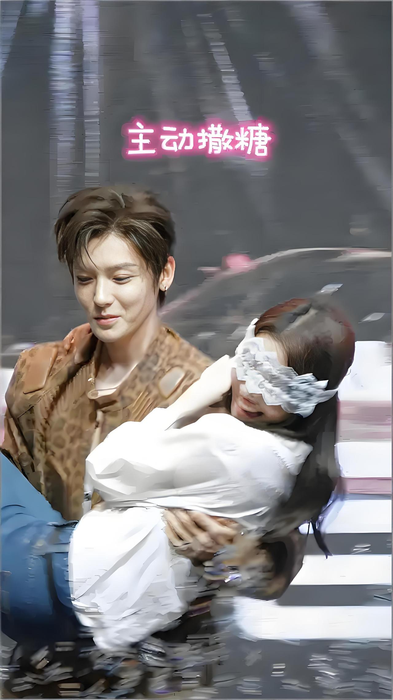 近日活动中,侯明昊与卢昱晓甜蜜还原“丝带公主抱”名场面。侯明昊轻松抱起卢昱晓,卢