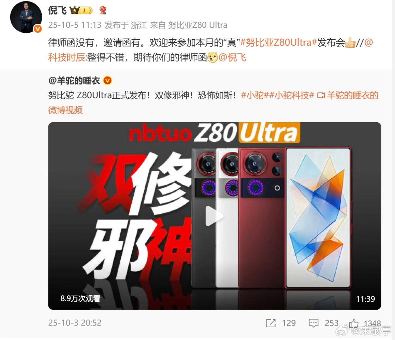 羊驼晒努比亚邀请函看来努比亚发布会应该是要去了!
