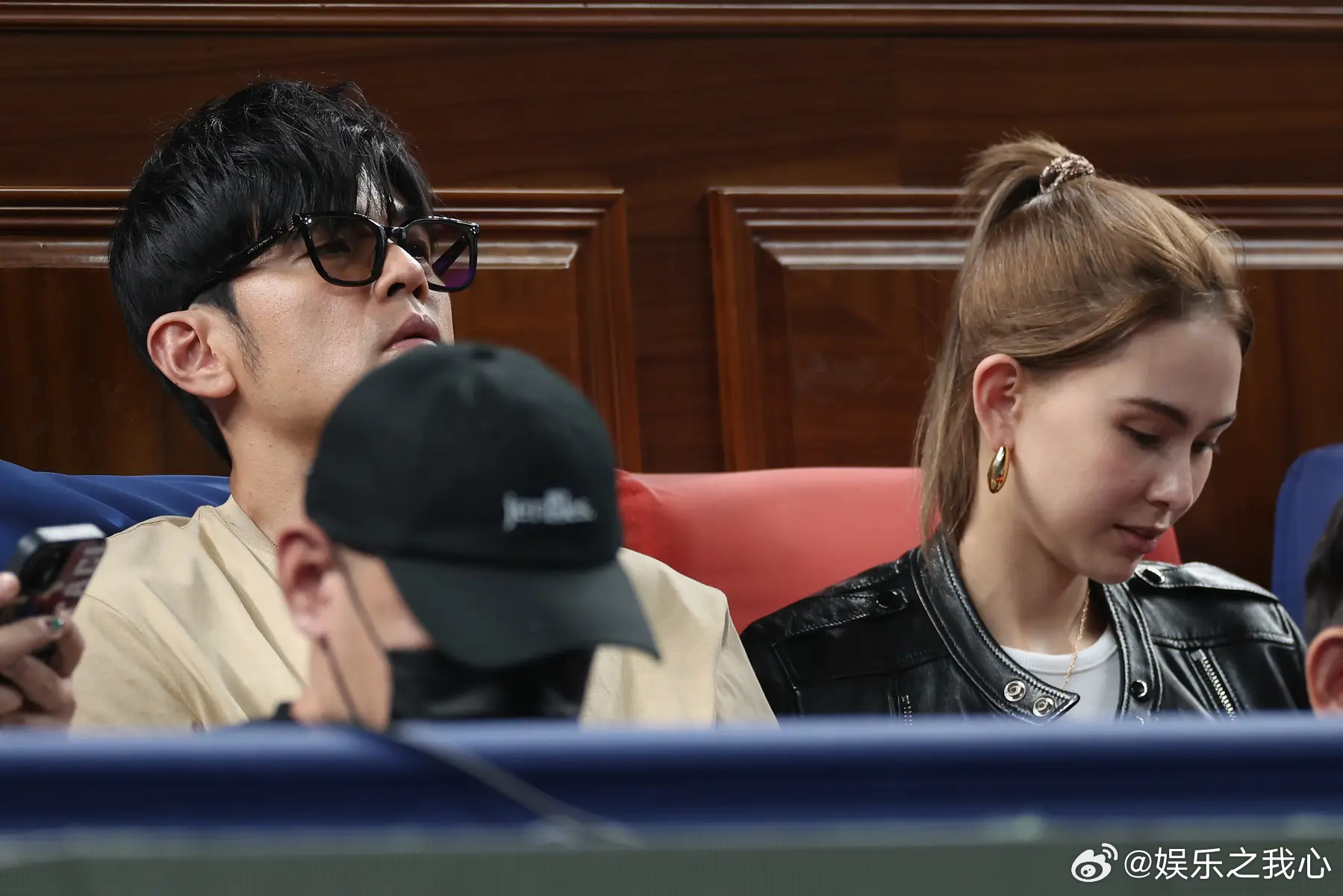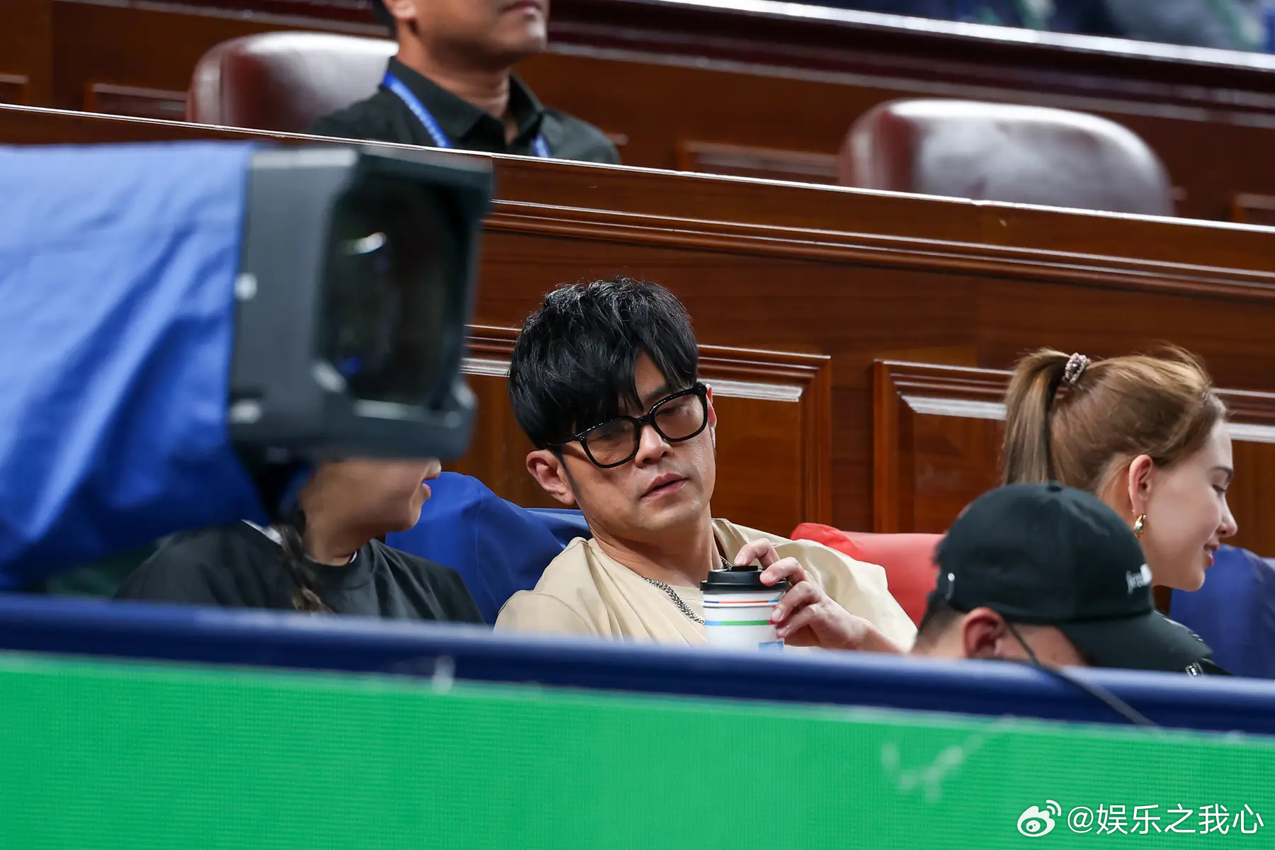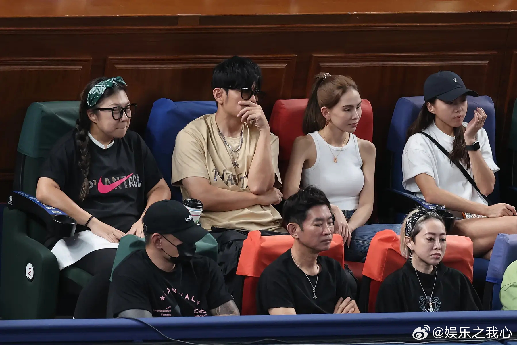 近日,一组周杰伦昆凌观战上海大师赛的照片流出。图中,周杰伦和昆凌坐在一起,两人打扮时尚。 ​​​