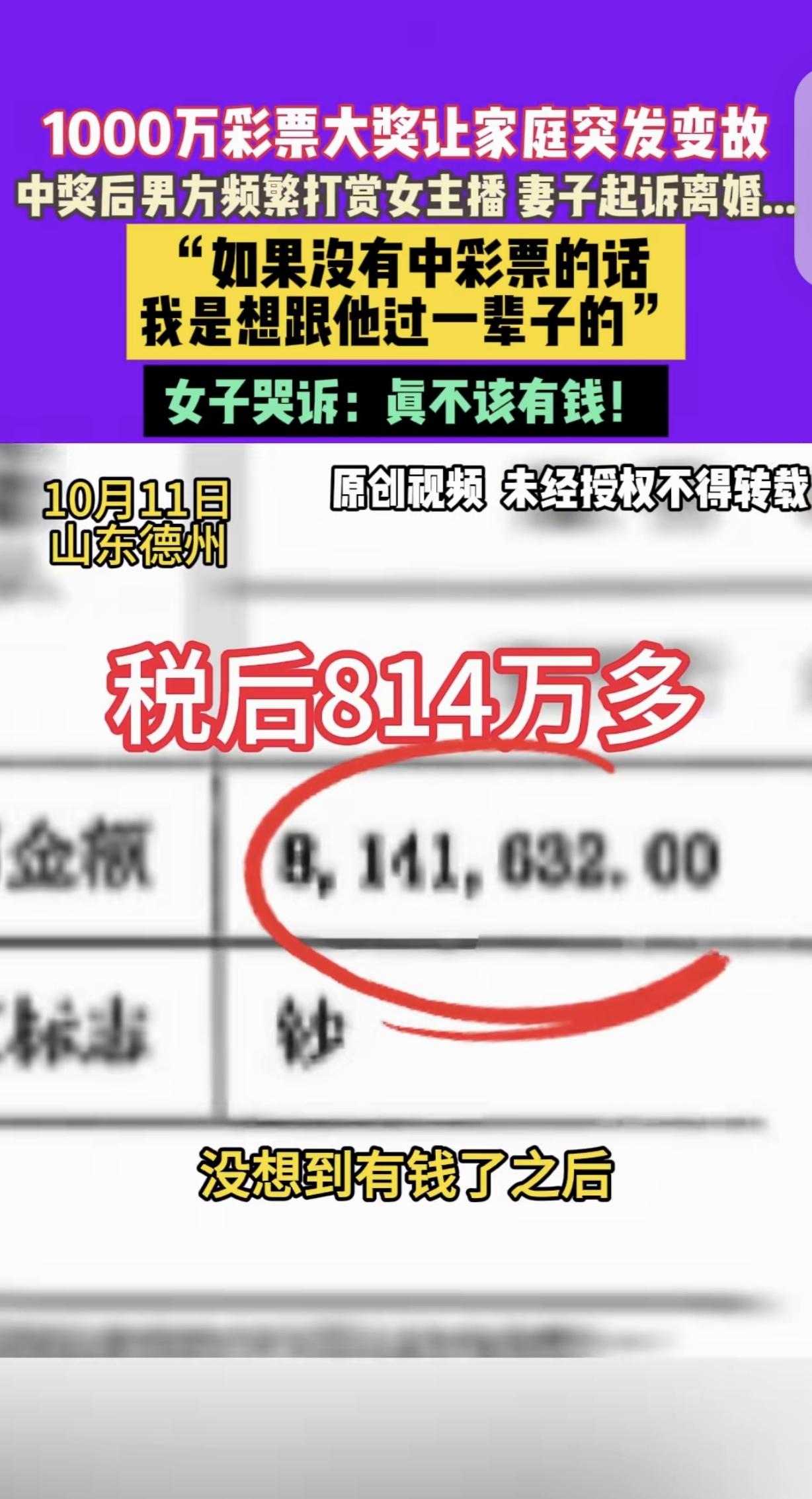“真不该有钱!”山东德州,一男子花42元买彩票,竟然中了1000万,税后得了814万,他中奖第3天,就把现金取走了,然后给了老婆一张卡,说里面存了300万,用于2人养老,妻子信以为真,可她发现男子从此就飘了,天天出去打牌,整夜刷美女,给不同的女主播打赏了120万,却一分都不舍得给妻子花,妻子去银行一查,才发现男子给的卡里,压根没有300万,余额为0,妻子大怒离婚,要求男子必须把814万分她一半。妻子哭诉:真不该有钱,如果没中彩票的话,我是想跟他过一辈子的。 苑女士是在丈夫一无所有的时候嫁给他的,当时,她看中的是丈夫老实可靠,没花花肠子,能一辈子对自己好。 可她万万没想到,自己丈夫竟时来运转,花42元买彩票,竟然中了1000多万,税后还能拿814万。 真是喜从天降,飞来横财,夫妻俩惊喜之余,丈夫第三天就去兑了奖,然后回到家,给了苑女士一张银行卡,说里面存了300万,让苑女士保管,他们夫妻将来用这笔钱养老。 苑女士喜不自禁,都说男人有钱就变坏,可丈夫飞黄腾达,变成千万富翁了,首先想到的,还是和她白头偕老,她感动不已。 出于对丈夫的信任,苑女士没去银行查这笔钱是否在卡里,她平时过日子精打细算,也没去消费。 可很快,苑女士发现丈夫有钱后就飘了,经常夜不归宿,流连牌桌,即使回家,对她也冷若冰霜,整夜刷美女,还给不同的主播打赏,却从不给苑女士花一分钱。 看着丈夫不务正业,钱流水一样旁落他人,苑女士心疼不已,再这么挥霍下去,家里有座金山也会被掏空。 苑女士跟丈夫吵过闹过,可无济于事,丈夫依然我行我素,苑女士去找女主播,女主播却:你丈夫又不是给我一个人打赏,他多大年纪?我多大年纪,我找男朋友也不可能找他这样的,我就是个女主播,我就是靠大哥来给我打赏的! 苑女士气的不轻,又去找丈夫,质问他为啥这么没良心?他们夫妻20年,她为这个家付出这么多可丈夫有钱就变心,既然不想过了,那就把她那一半给她,她们夫妻缘尽于此。 苑女士很痛心,虽然有钱了,但家却要散了,如果没有中奖的话,他们夫妻可能相濡以沫一辈子,这么看来,真不该有钱呀! 这个男人不懂,中彩票的钱属于夫妻共同财产,离婚的话至少得分一半,何况他还是有过错在先。 发了横财守不住,没那个命 ,把握不住,就会导致妻离子散。 跟妻子结婚后,给你带来了财运,让你彩票中了奖,你却这样对待妻子,你的财,守不住哦。 这对夫妻的故事令人唏嘘。男子中得千万大奖,本是喜事,却因自身缺乏责任与对婚姻的珍视,陷入挥霍无度、背叛家庭的漩涡。 中奖所得属于夫妻共同财产,他不仅隐瞒真实存款情况,还肆意打赏主播,不顾妻子感受与家庭未来。 而苑女士当初因丈夫老实可靠选择相伴,却在财富面前遭遇背叛。这警示我们,财富若没有正确的价值观与责任感支撑,可能成为破坏家庭的导火索。 婚姻需要双方共同经营,面对财富更应坚守初心,相互尊重,否则,再多的钱也换不来家庭的幸福与长久。 《民法典》第1062条规定:夫妻在婚姻关系存续期间所得的生产、经营、投资的收益为夫妻的共同财产,归夫妻共同所有。 本案中,男子婚后购买的彩票中奖所得814万元,属于夫妻婚姻关系存续期间的共同财产。 尽管彩票是以男方个人名义购买,但投资取得的收益属于共同财产,离婚时苑女士有权要求均等分割,即407万元。 此外,男方声称将300万元存入夫妻共有的银行卡,实际却隐瞒资金真实去向,导致卡内余额为0,这一行为已涉嫌转移或隐匿共同财产。 《民法典》第1092条规定:夫妻一方隐藏、转移、变卖、毁损、挥霍夫妻共同财产,或者伪造夫妻共同债务企图侵占另一方财产的,在离婚分割夫妻共同财产时,对该方可以少分或者不分。 男方中奖后存在两项违法情节:以虚假的300万元银行卡欺骗苑女士,实际转移或挥霍资金;将120万元用于打赏女主播、赌博等个人享乐,明显超出家庭正常生活需要,属于恶意挥霍。 苑女士在离婚诉讼中可主张男方少分或不分共同财产。 挥霍或隐匿金额部分可能全额归入另一方财产范围,甚至进一步追偿。 例如,如果法院认定男方转移或挥霍金额达420万元,300万空卡+120万打赏,苑女士可要求直接分配其应得的407万元,并要求对男方剩余部分进行惩罚性扣除。 男方对夫妻共同财产的无知,误以为可独占奖金,和道德缺失,沉迷打赏、隐瞒财产,直接导致家庭破裂。 根据《民法典》,苑女士不仅有权分得一半奖金,还可主张因男方过错导致的额外赔偿。 财富突降时,法律是维系家庭信任的底线,个人道德与责任则是守护幸福的上线。婚姻中任何一方若突破底线,终将付出法律与经济代价。 对此,你怎么看? 关注@灋律盐究员 学法辩是非,用法止纷争。