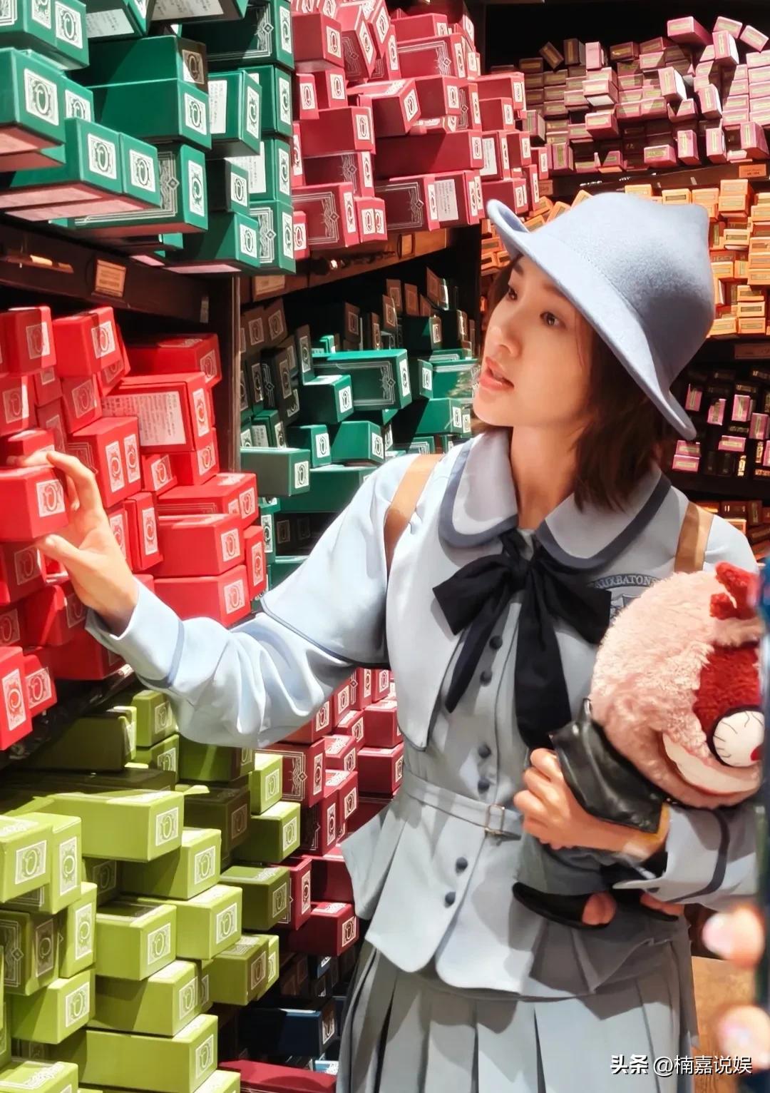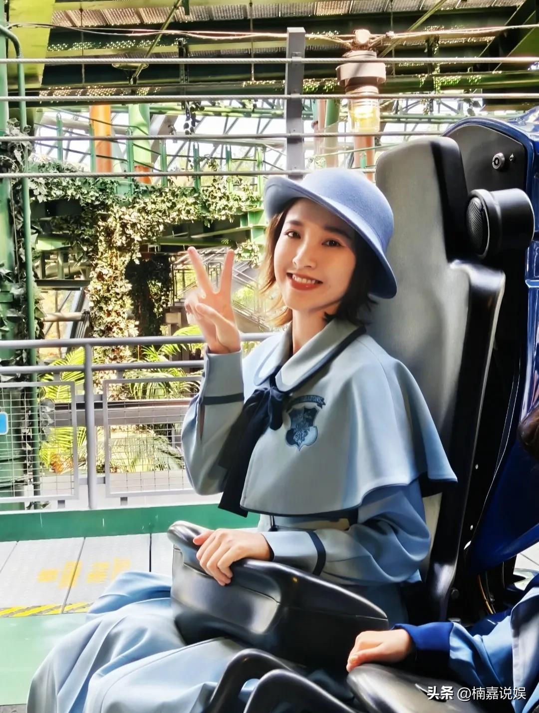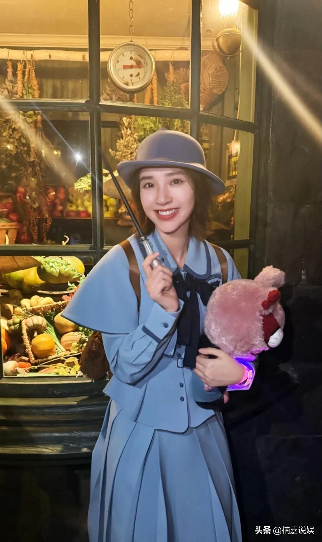 唐艺昕带着女儿现身北京环球影城,她戴着小圆帽,穿着蓝色校园装,五官漂亮,身材窈窕