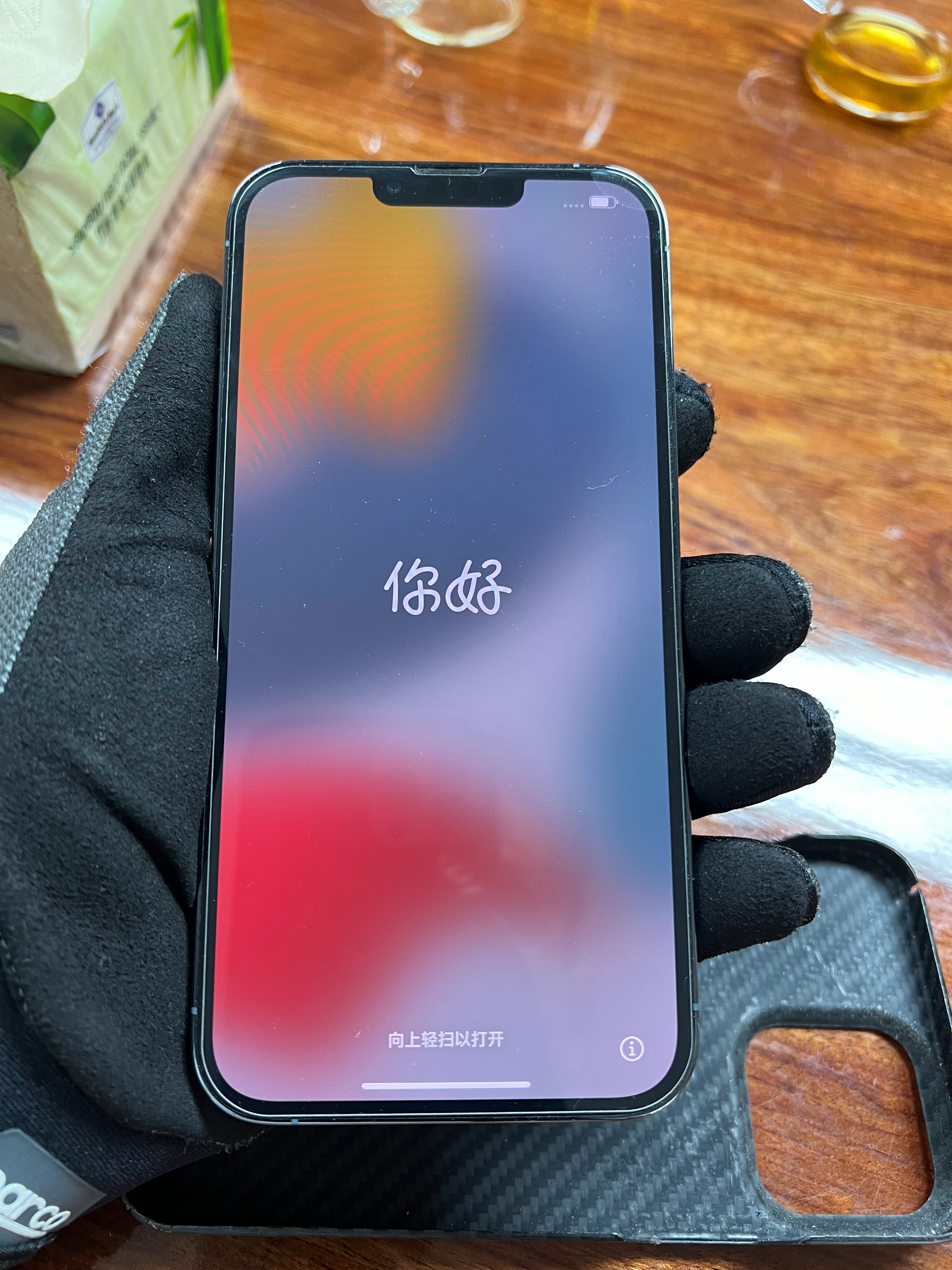 IP13 PM 国行无拆修,电池78%,左上角有磕碰掉肉,边框部分有擦痕,屏幕,背板无划伤