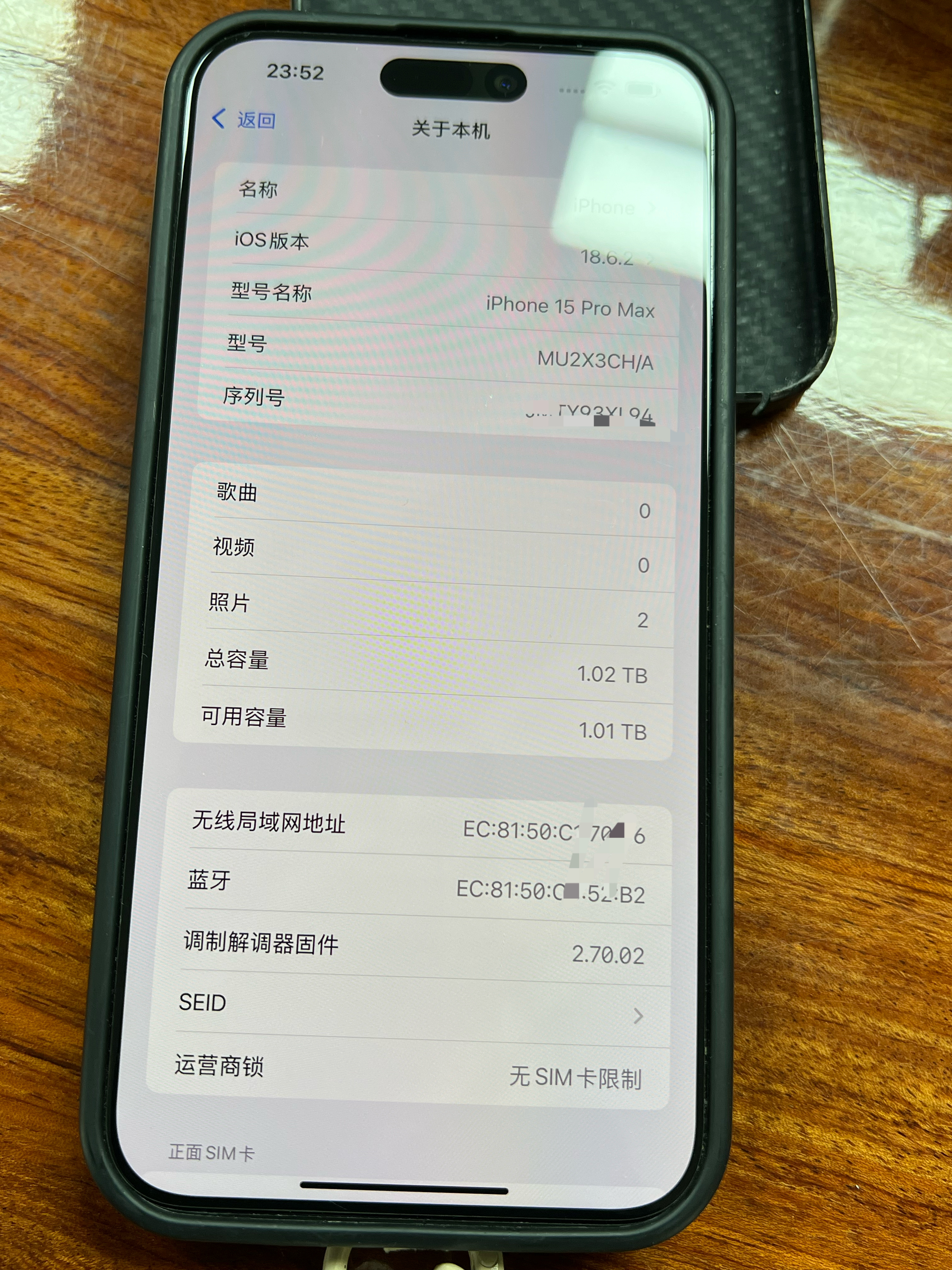 iPhone15PM 1TB 黑色 带壳带膜 国行