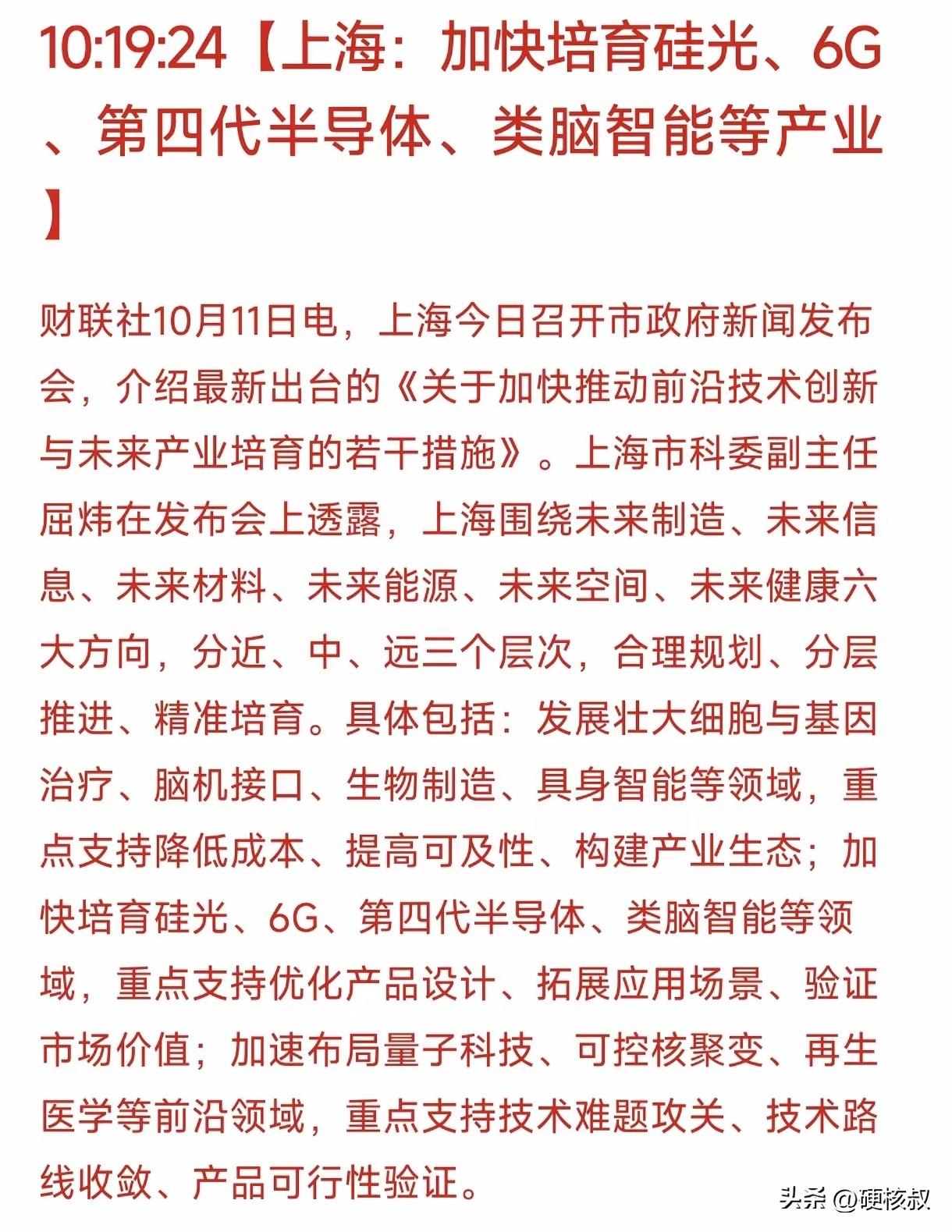 快讯!快讯! 上海“黑五”后放大招!这份产业清单藏着未来十年机遇 在昨晚“黑色星期五”后,上海重磅宣布! 周六刚开始,上海就发布了《措施》,明确了未来产业发展方向,包括脑机接口、具身智能、硅光、第四代半导体、6G、类脑智能、量子科技等板块,可以说涵盖了科技的方方面面,布局和眼光非常长远! 很多人没意识到,这份《措施》不是简单列清单,而是给中国科技突围划了“主战场”。要知道全球脑机接口市场规模2024年已突破120亿美元,上海现在下场,就是要抢未来十年的话语权。 别觉得这些领域离生活远,去年上海交大团队研发的脑机接口设备,已经能让瘫痪患者用意念控制机械臂喝水。现在政策跟上,意味着这类技术落地速度会比想象中快得多。 有人质疑会不会是“纸面规划”,看看数据就知道底气。2024年上海研发投入强度达4.2%,是全国平均水平的两倍多,仅张江科学城就聚集了38位院士、500多个国家级科研平台,这些不是摆样子的。 最关键的是选赛道的眼光够毒。第四代半导体在新能源汽车逆变器上是刚需,全球缺口超30%;6G研发现在占一步先机,未来十年就能主导万亿级市场,上海这步棋踩得太准。 当然也得清醒,这些领域没有“速成法”。量子科技要突破材料瓶颈,具身智能得解决算力成本问题,每一步都得啃硬骨头。但上海敢把这些写进《措施》,就是做好了打持久战的准备。 对普通人来说,这不是遥不可及的政策,而是实实在在的机会。未来三年相关产业预计会催生200多万个岗位,从研发到制造,从应用到服务,每个环节都可能藏着改变命运的契机。 上海从来不是靠跟风发展,这次瞄准的都是全球科技竞争的“命门”领域。当别的城市还在纠结短期效益时,它已经把目光放在了十年后,这种魄力,才是真正的“一线城市担当”。 各位读者你们怎么看?欢迎在评论区讨论。