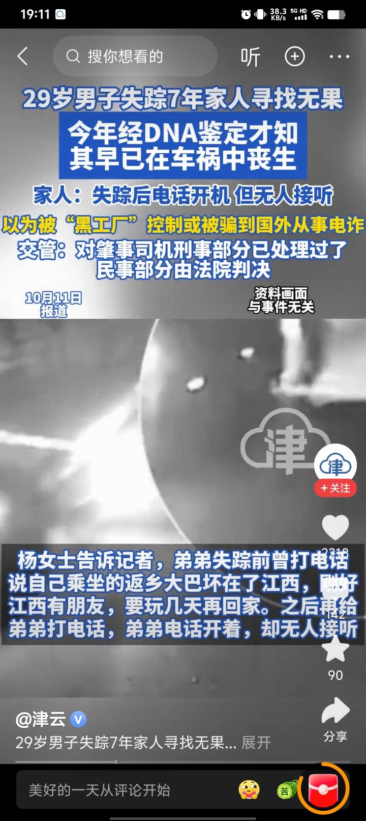 贵州安顺的杨女士最近收到的消息,让全家人的心都碎了。 她找了整整7年的弟弟,早在2018年就因车祸去世了。 2018年8月,杨胜学在返乡大巴上给家人打电话:"车坏在江西了,朋友说带我玩几天再回。" 谁能想到,这竟是他留给家人的最后一句话。 手机虽然一直开机,但无论怎么拨打都无人接听,家人报警后调取监控,发现他在客运站下车后就消失了。 "是不是被黑工厂控制了?""会不会被拐去搞电诈?"这些可怕的念头折磨了杨家人整整七年。 母亲每天以泪洗面,直到今年8月,DNA比对结果让真相浮出水面——弟弟在滞留江西期间遭遇车祸,身份不明的他被当作无名氏火化。