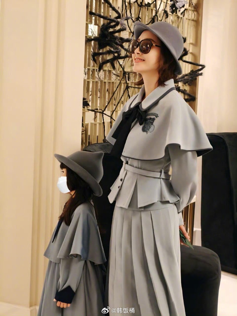 唐艺昕和女儿亲子装出游,唐艺昕女儿睫毛好长!!感觉长得很漂亮诶