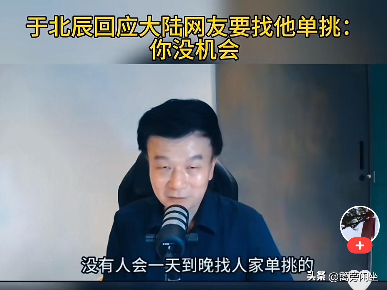 于北辰破防了,回应大陆网友“单挑”没机会 于北辰自带喜感,大陆网友经常拿他的网络