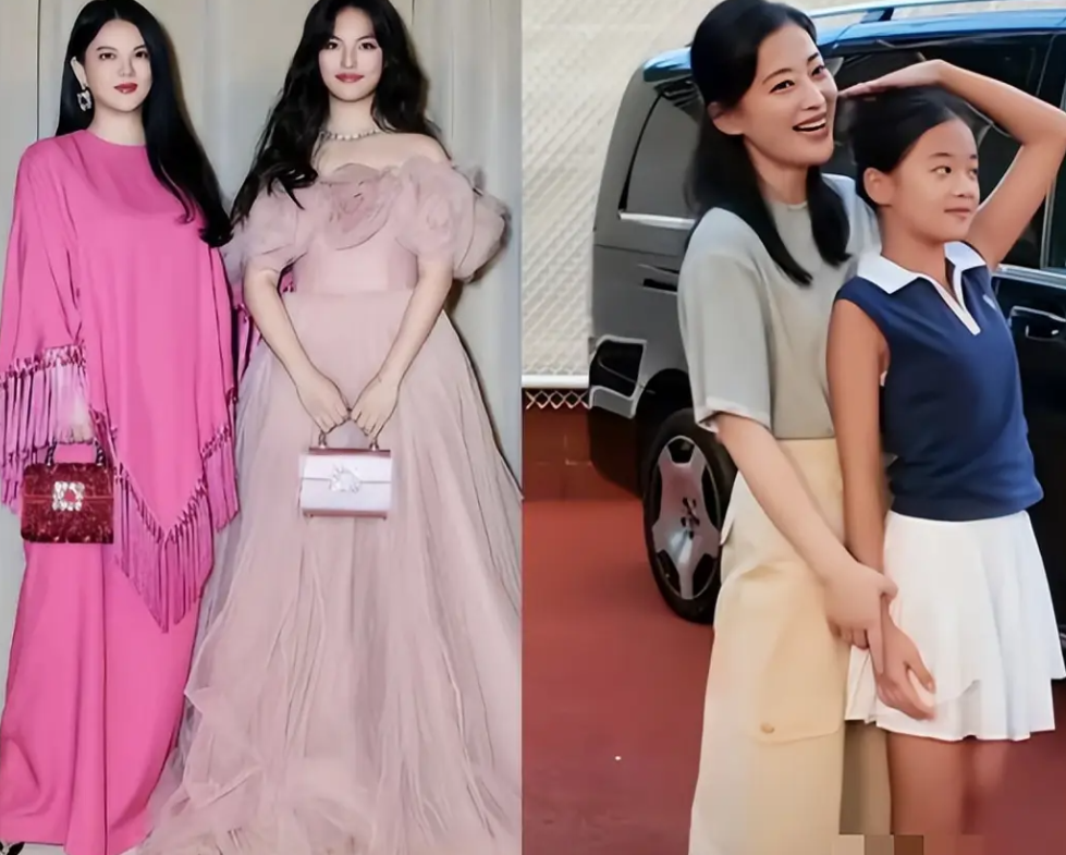 李湘女儿和梅婷女儿同框后,才发现,气质不是用钱就能砸出来的