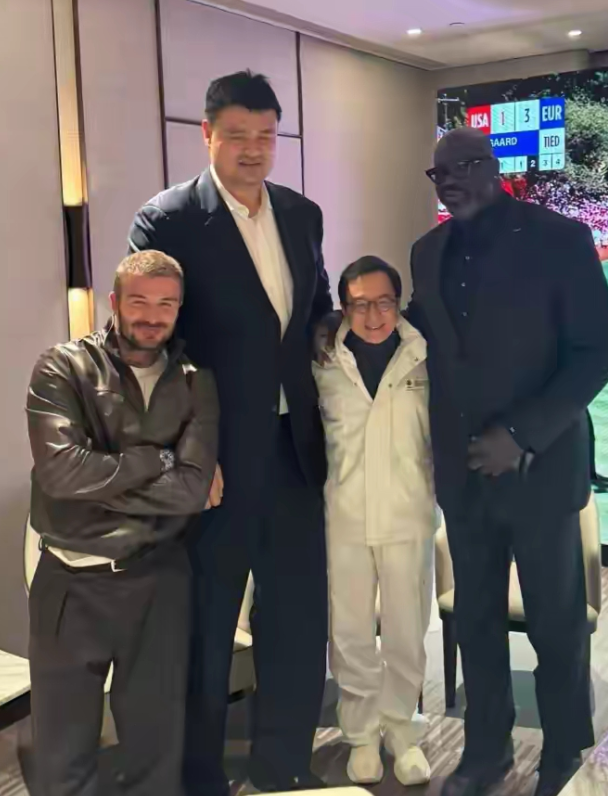 姚明超大,奥尼尔有点像“金刚”,贝克汉姆最帅,成龙小鸟依人。