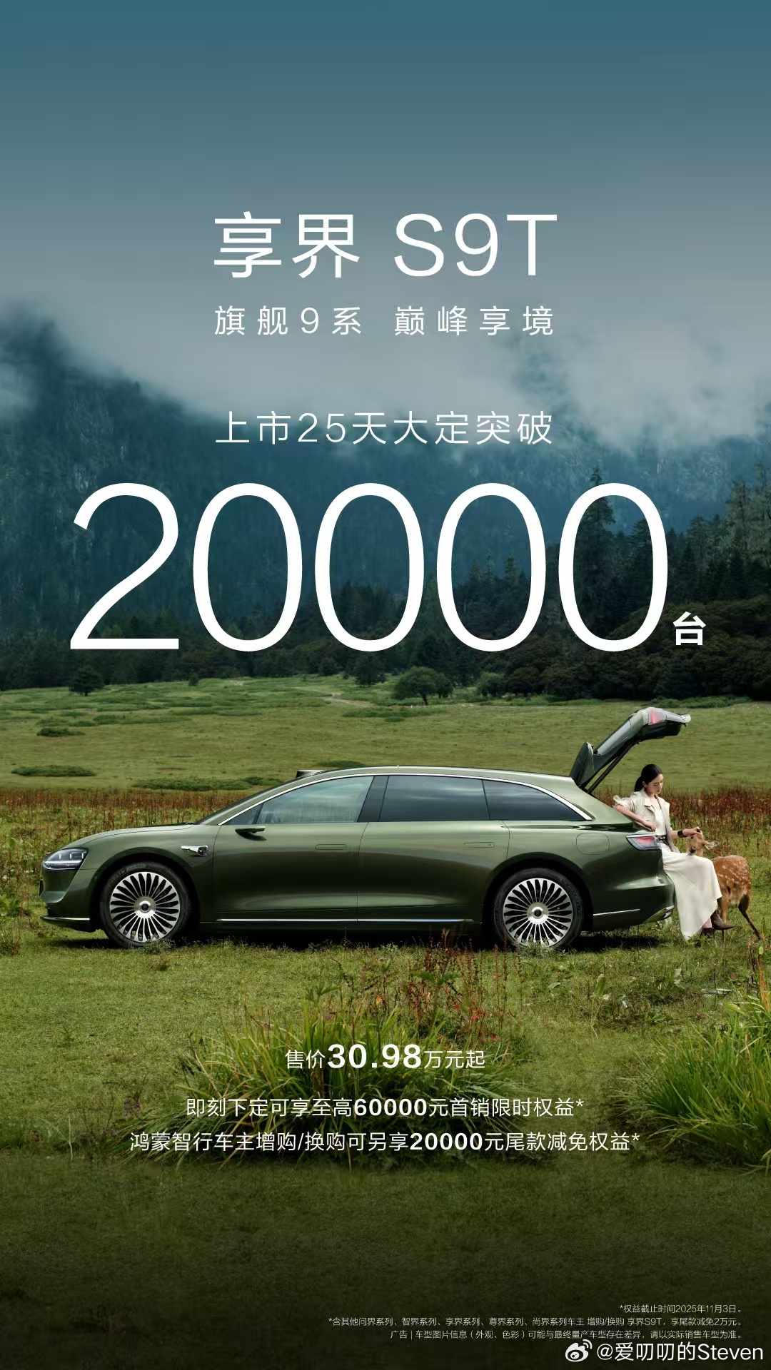 享界S9T创旅行车市场销量记录享界S9T上市25天大定突破20000台