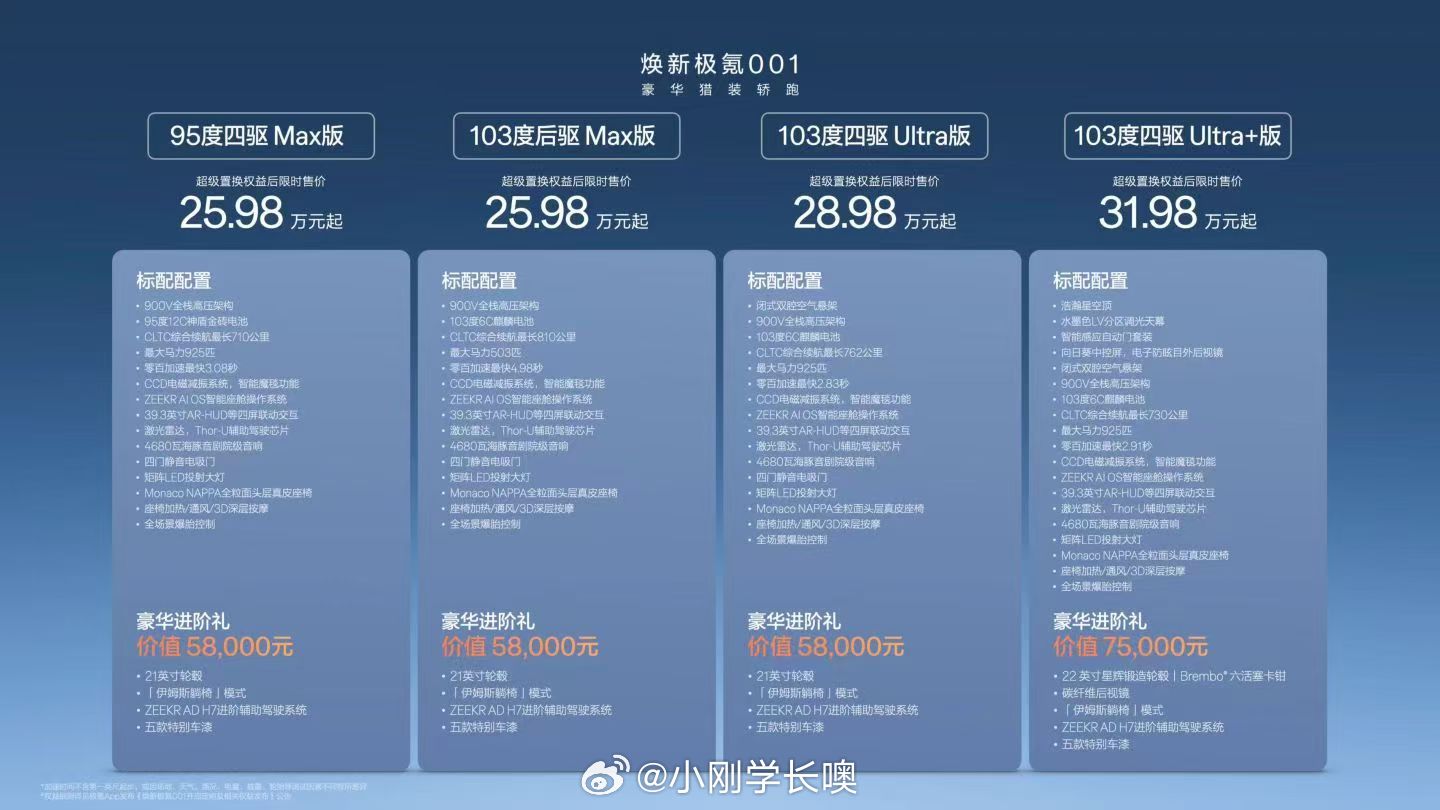 新款极氪001上市,限时价25.98万起,三电、底盘、智能配置都升级。