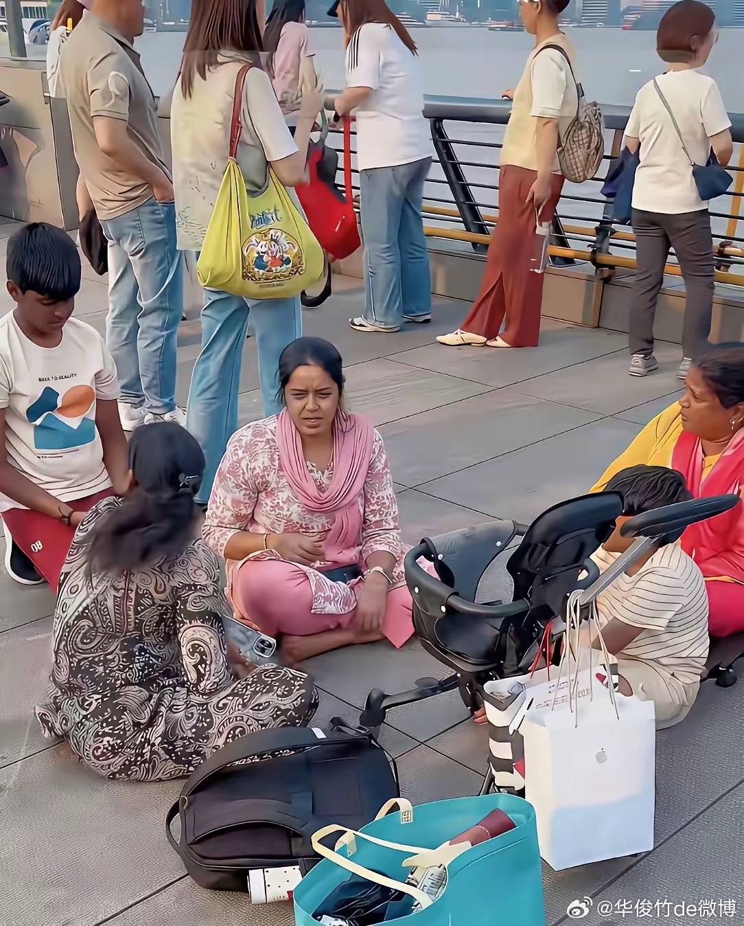 就问你服不服?国庆节上海外滩一角,一家印度人正在熙熙攘攘的人群中见缝插针,围坐在地上享受慢生活。看这背包、手提袋、婴儿车,还是挺齐全的。