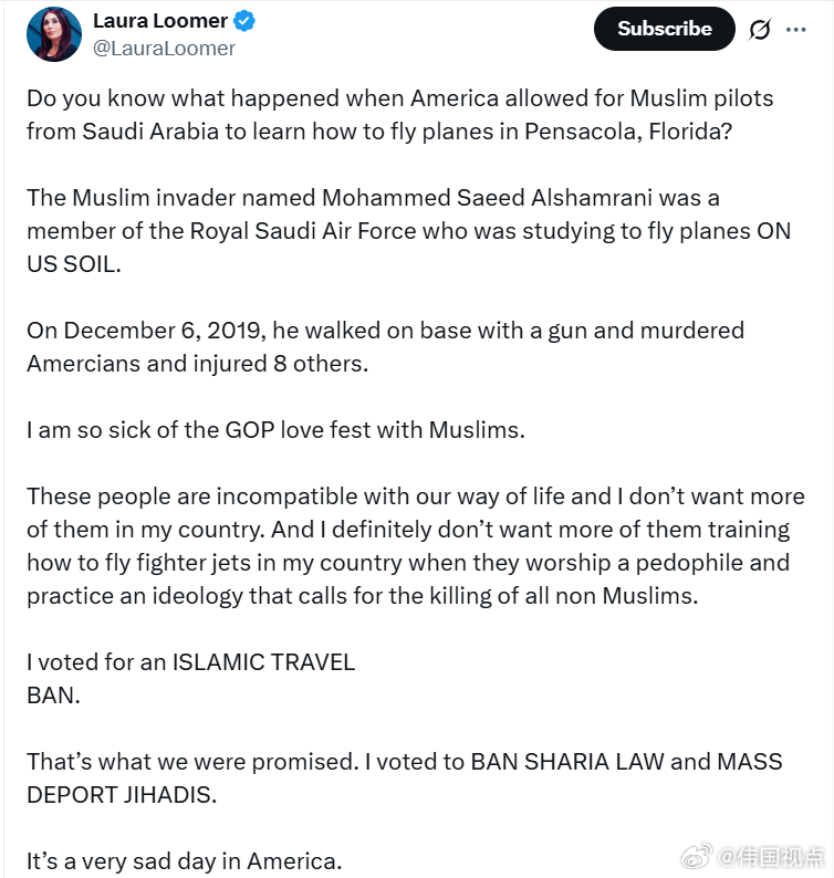 劳拉·卢默:“你们知道美国允许沙特阿拉伯的穆斯林飞行员在佛罗里达州彭萨科拉学习飞