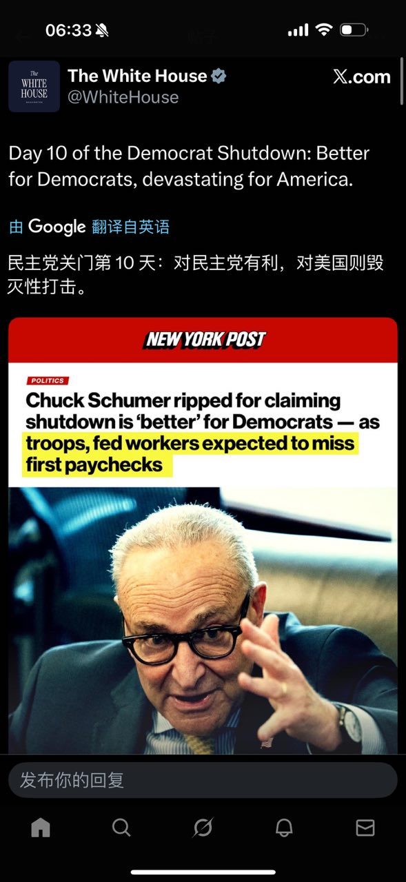 民主党关门第10天:对民主党有利,对美国则毁灭性打击。