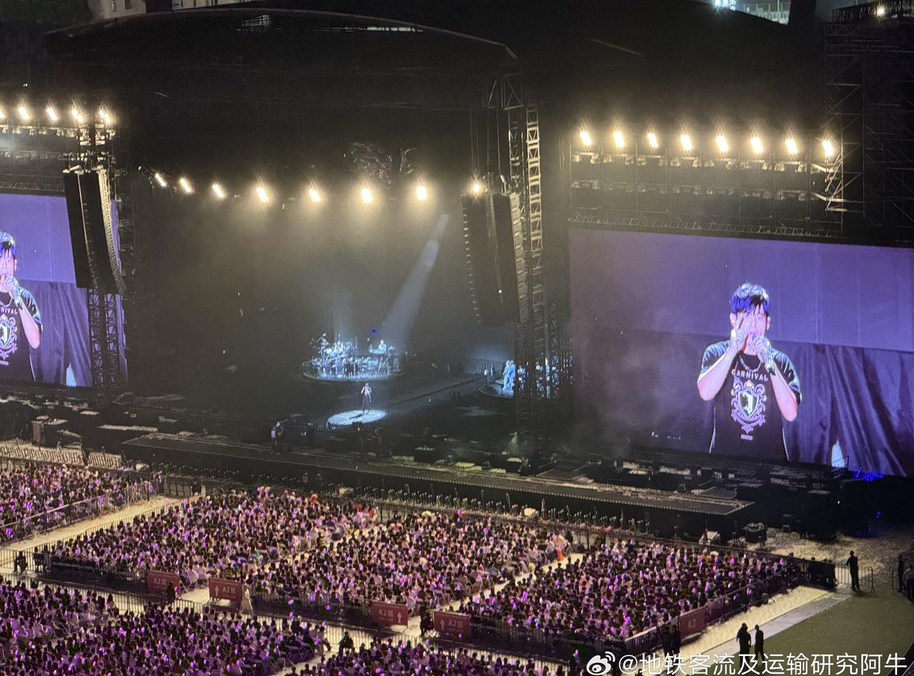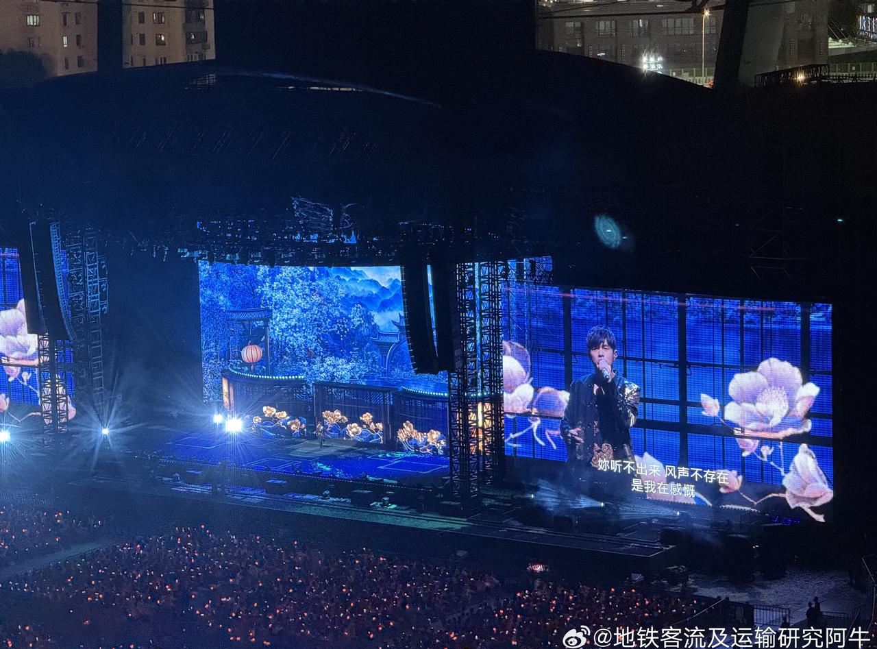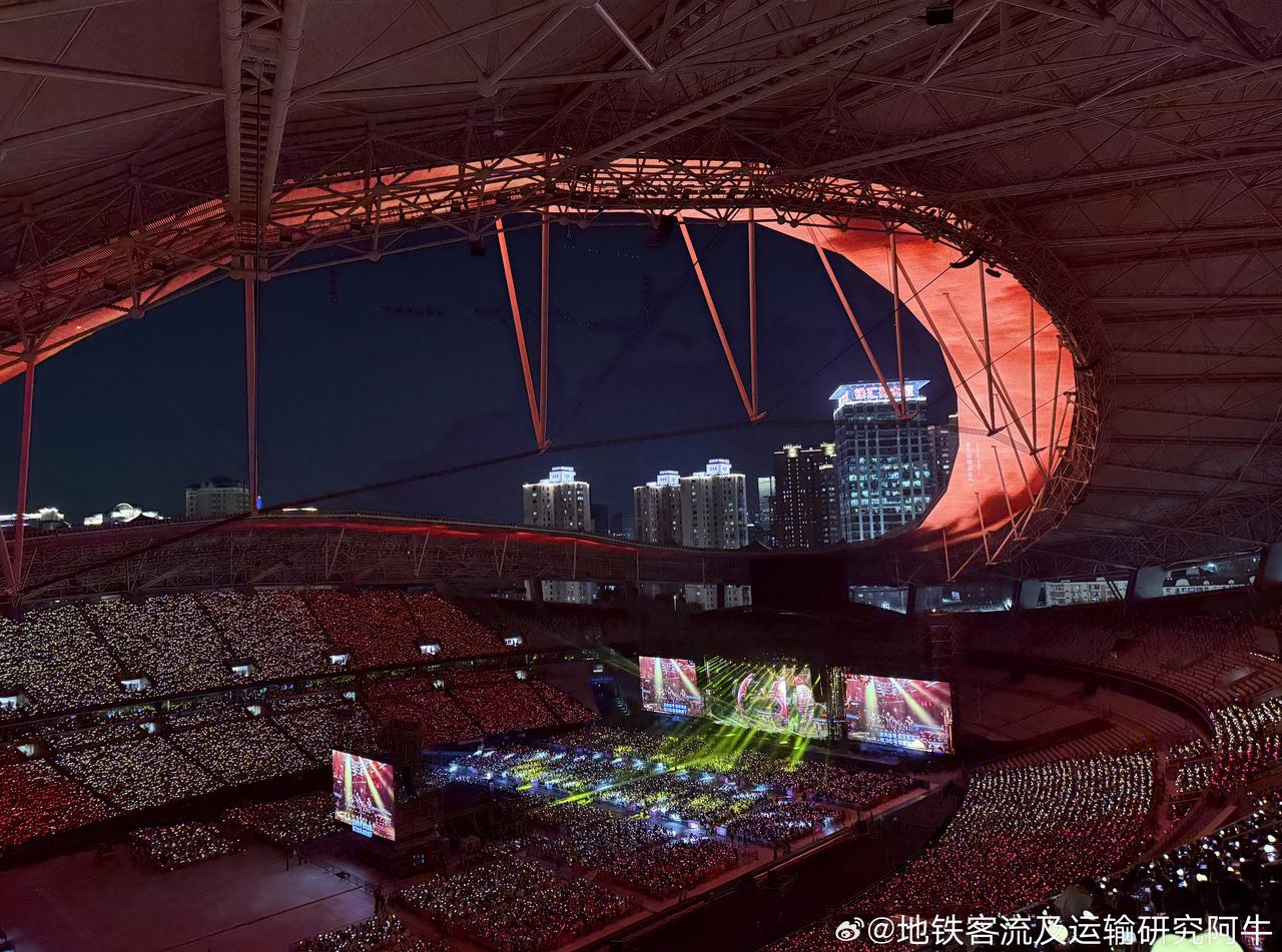 网友 @梅柚碱芥 分享上海地铁和周杰伦演唱会:2025年10月11日(周六,周杰伦上海演唱会 )晚上,上海地铁11号线上海游泳馆出站往上海体育场方向(图1),周杰伦嘉年华演唱会(图2-6),演唱会出来上海体育馆站(1/4号线,图7),上海游泳馆站(11号线,图8),11号线嘉定北方向车内客流(图9)。