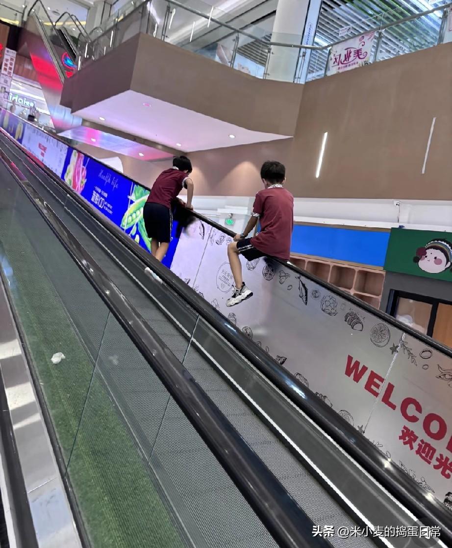 谁家小孩千万别找商场赔钱! 在世博广场,我亲眼目睹俩娃在扶梯外侧上演“极限攀爬”!脚踩窄沿、手扒玻璃,在几层楼高的地方晃悠,看得我手心冒汗——这哪是逛商场,简直是玩“生死时速”! 旁边人大气不敢出,就怕惊扰到孩子一个趔趄。这要是真出点意外,谁敢说不是家长看管失职?可偏偏有人事后要找商场赔钱,这锅商场背得冤不冤? 孩子淘气是天性,但安全底线不能丢!你觉得这种事该怪商场防护不到位,还是家长监护失职