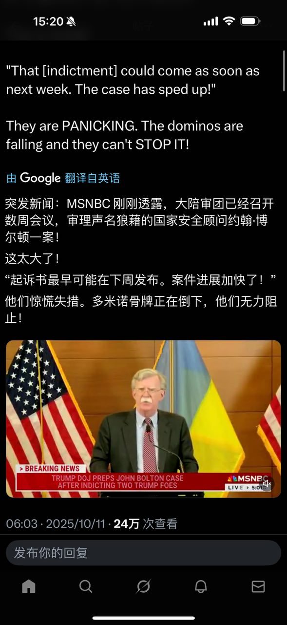 MSNBC刚刚透露,大陪审团已经召开数周会议,审理声名狼藉的国家安全顾问约翰.博尔顿一案!