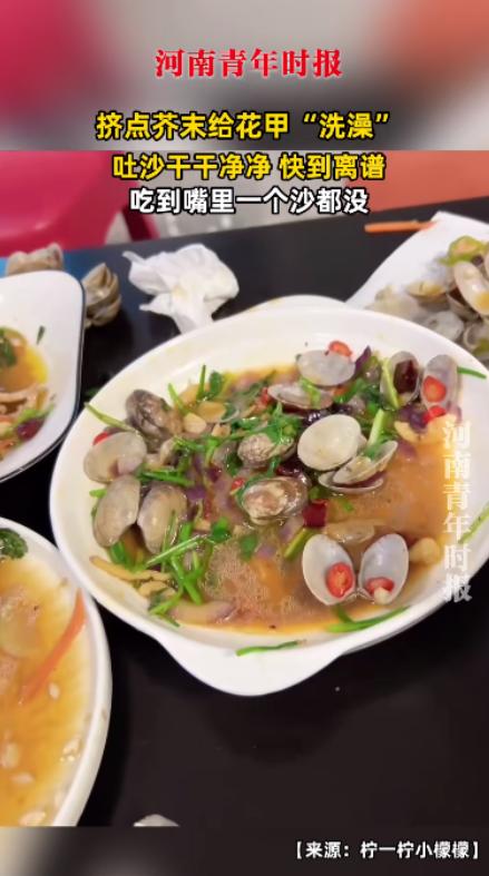 “人怎么能这么聪明!”10 月 10 日,广东,一男孩为了炒出来的花甲里没有沙子,专门在短视频平台刷了好几个美食教程,才锁定了芥末这个 “秘密武器”,一开始他妈妈还觉得不靠谱,怕把好好的花甲弄糟蹋了。 平时咱们在家处理花甲,大多是用盐水泡,有时候泡三四个小时,炒的时候还是能嚼到细沙,尤其是花甲裙边的位置,硌得牙不舒服,好好的一顿饭都没了兴致。 这个男孩说他看的教程里讲,芥末里的异硫氰酸酯能刺激花甲的生理反应,让它们更快张开壳吐沙,他还特意去美食科普号 “舌尖研究所” 查了下,发现对方引用过《中国调味品》期刊 2023 年的一篇短文,提到这种成分对贝类吐沙有辅助作用。 他第一次尝试时,往清水里挤了小半管芥末,搅拌均匀后放进花甲,才过十几分钟,就看到水底沉了一层细细的沙子,比用盐水泡一下午还见效快。 不过他也走了点弯路,第二次挤多了芥末,炒出来的花甲辣味特别冲,家里人吃了都直擤鼻子,后来他反复试,才摸出一斤花甲配 5 克左右芥末刚好,既能去沙又不抢花甲本身的鲜。 男孩的妈妈在市场摆摊卖炒花甲,以前总有人因为吃到沙子回来提意见,用了这个方法后,最近半个月都没接到过投诉,回头客还多了不少,有时候收摊晚了还有人来问能不能多做一份。 旁边卖海鲜的摊主听说后也来取经,试了之后特意送了一盘炒花甲过来,说确实比以前干净,连她那不爱吃花甲的小孙女都吃了好几个。 有网友看到这个方法后,试着用在蛏子和花蛤上,发现也管用,不过泡蛏子得控制在 5 分钟以内,不然蛏子肉会变紧,吃起来不鲜嫩。 还有人说以前只知道芥末能配寿司、拌凉菜,从没想过还能用来处理食材,现在家里洗海鲜再也不用等大半天,下班回家随手泡十分钟就能做饭。 现在这个男孩的方法在他们小区业主群里传开了,好多妈妈都跟着试,有人还在群里分享,说在芥末水里加几滴香油,花甲吐沙会更彻底,因为香油能隔绝空气,让花甲更着急开口。 咱们平时处理食材,总习惯跟着老一辈的方法来,很少会想到用调味品帮忙,其实生活里很多不起眼的东西,换个用法就能解决大麻烦。 不知道你平时洗花甲是用盐水还是别的方法,要是你也试过类似的小窍门,或者有更好的去沙办法,都可以跟大家说说呀。 信息来源:《挤点芥末给花甲 “洗澡”,吐沙干干净净快到离谱,吃到嘴里一个沙都没》河南青年时报;部分原理参考《中国调味品》2023 年第 48 卷第 3 期 “常见调味品对贝类吐沙效果的影响” 短文